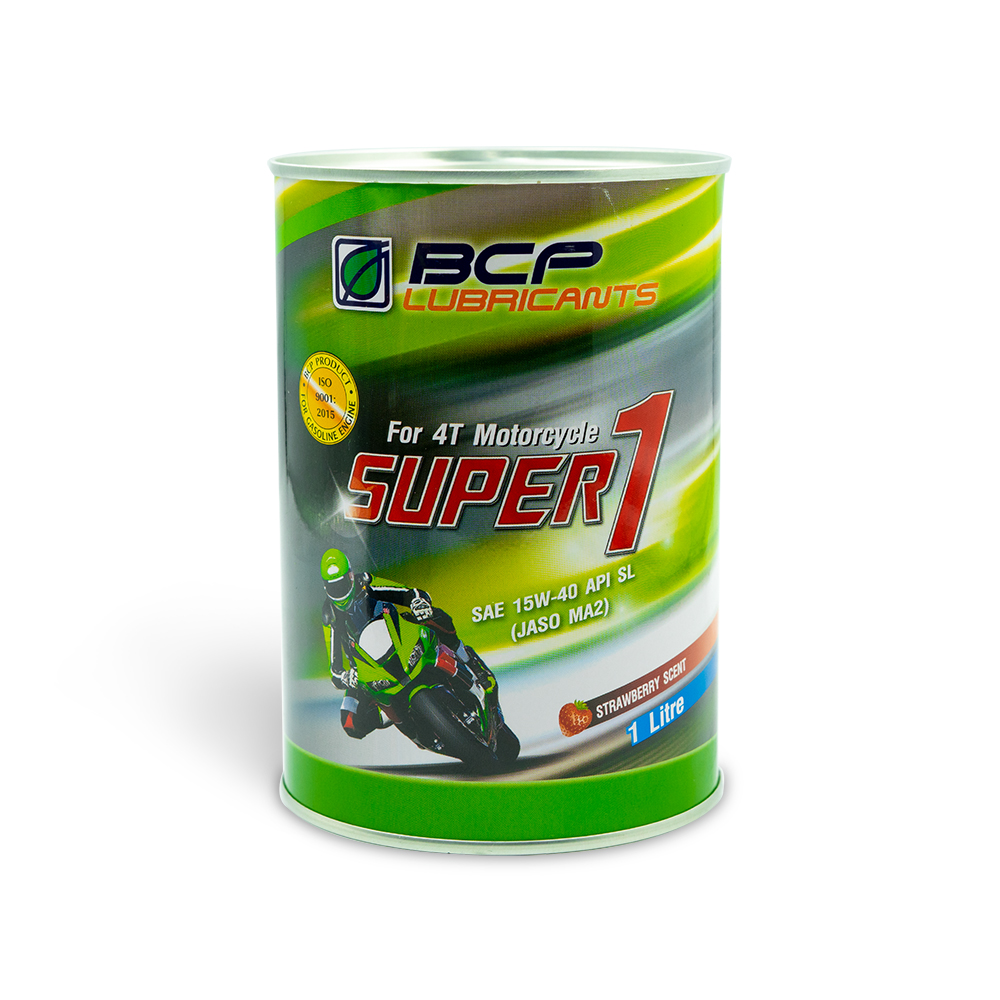 Nhớt xe số BCP Super 1 - SAE 15W40 - API SL - JASO MA2 - lon 1L (màu đỏ, mùi dâu) BCP Super 1 4T Motorcycle là sản phẩm dầu nhớt đa cấp tổng hợp chuyên dùng cho tất cả các dòng xe số động cơ 4 thì. Nhớt xe số BCP Super 1 phiên bản lon là dòng sản phẩm chất lượng cao được sản xuất từ dầu gốc cao cấp và phụ gia đặc biệt giúp mang lại những lợi ích tuyệt vời, đặc biệt là tăng hiệu suất bôi trơn và làm sạch động cơ tối ưu. LỢI ÍCH SẢN PHẨM: