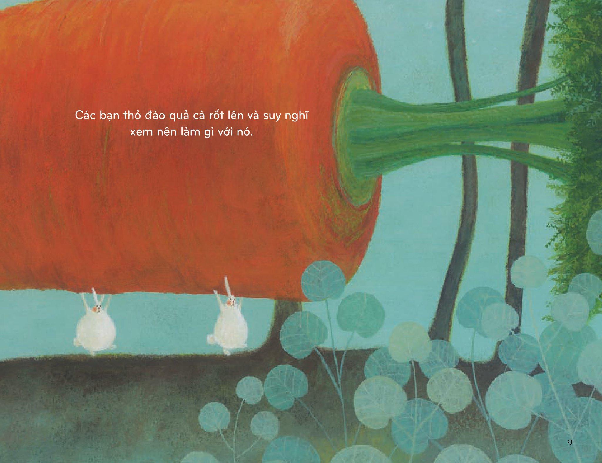 Anh em nhà Thỏ tìm thấy quả cà rốt to nhất trên đời nhưng chằng biết làm gì với nó.