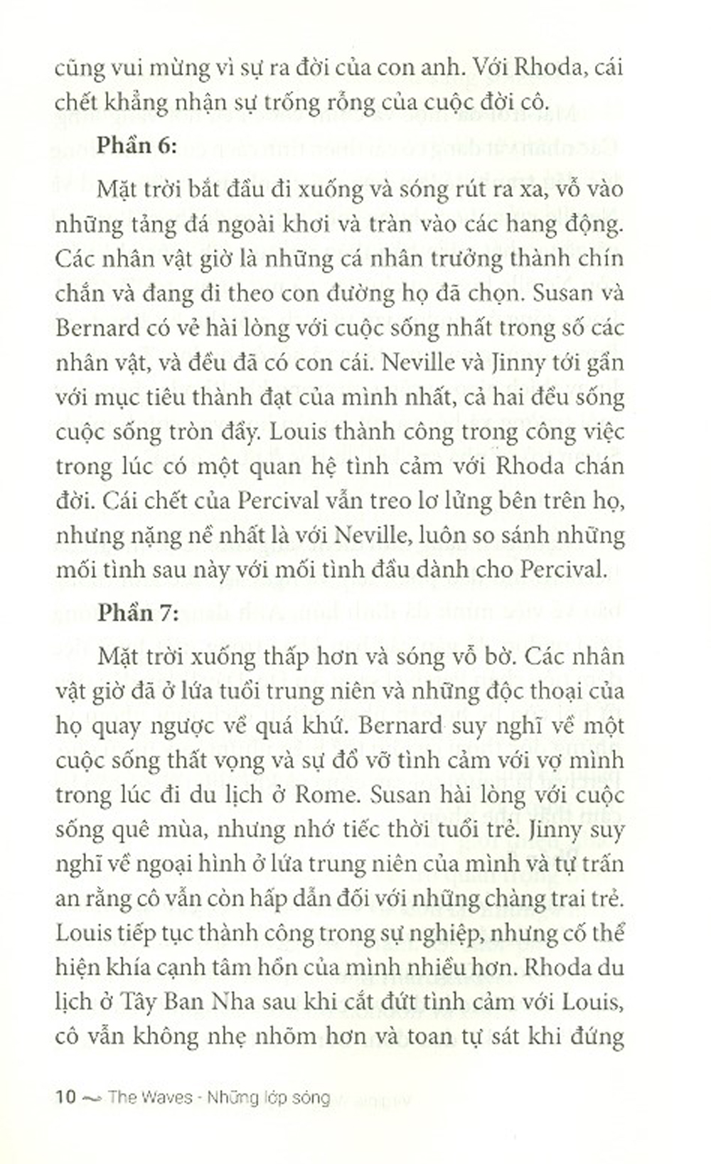 "Những lớp sóng" của Virginia Woolf là triều dâng của đời sống, triều dâng của một thứ ngôn từ nghệ thuật ngoại hạng mà dường như chỉ có một thiên tài như nàng, người tạo ra những bước sóng lạ thường trong văn chương thế kỷ hai mươi.