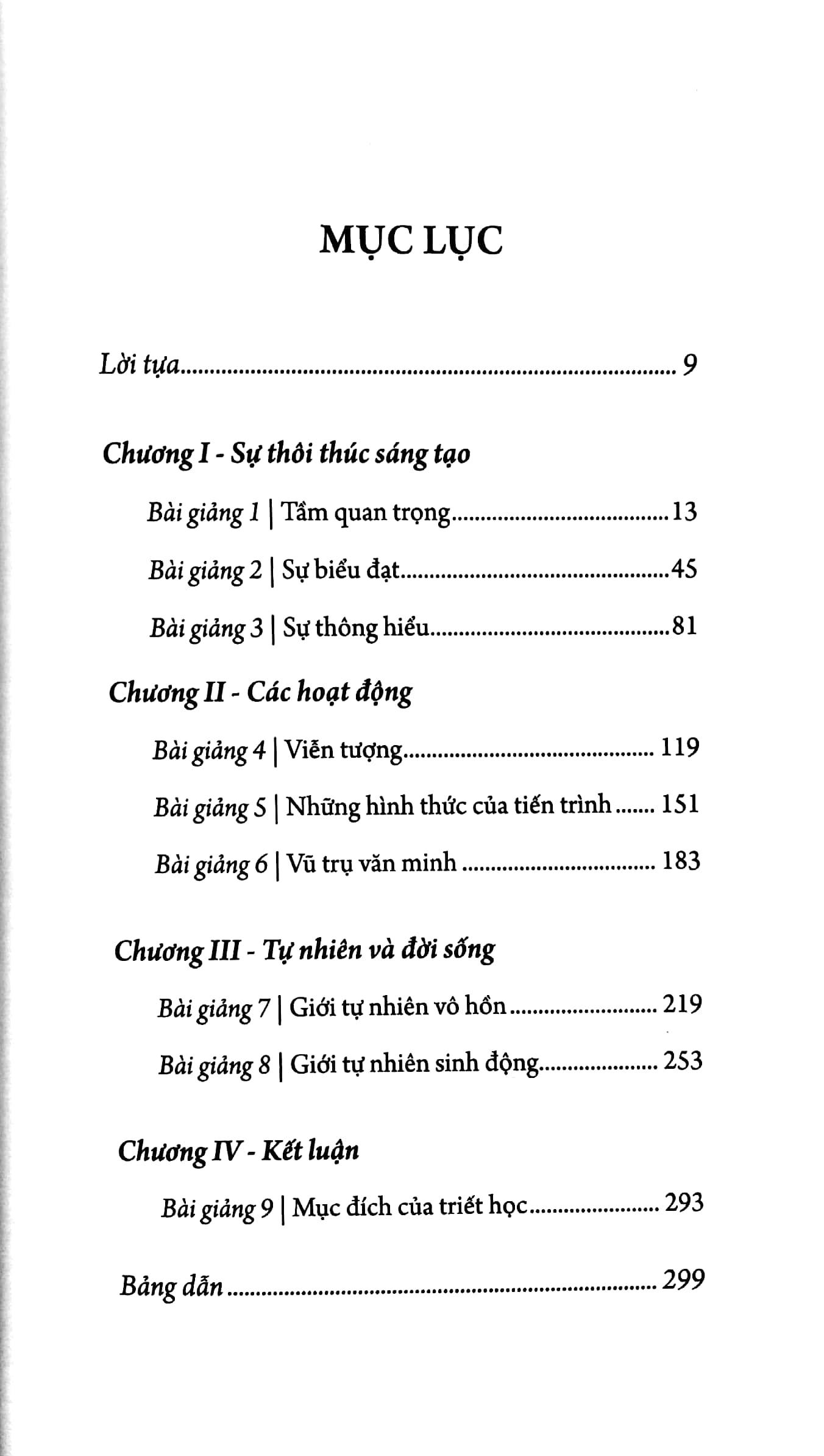 Cuốn sách là tập hợp sáu bài giảng của Alfred North Whitehead, là một dẫn nhập súc tích cho bạn đọc hiểu tư tưởng của ông, bước đầu với những phác họa đơn giản về siêu hình học và vũ trụ luận mà trước đó ông đã trình bày khái quát và chuyên sâu hơn trong magnum opus/kiệt tác, Process and Reality [Tiến trình và thực tại].