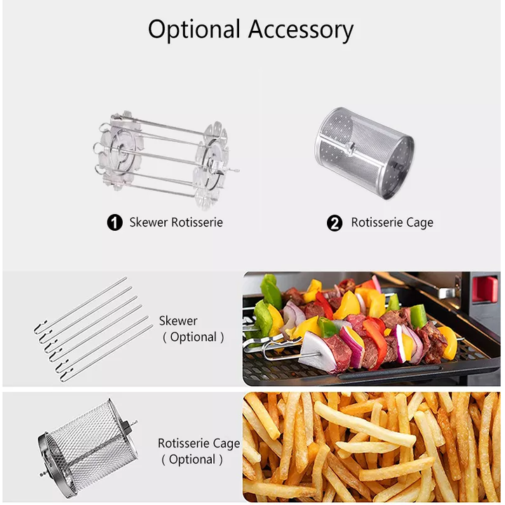 – Không gian để nướng lớn: Với dung tích 12L nó như Quán bánh ngọt tích hợp, nướng nguyên miếng lớn, giá đỡ Kababs, và cả con gà ! Có được thịt mềm, giòn, cá đen hoàn hảo và rau củ được nướng một cách chuyên nghiệp với bánh quay tích hợp trong lò chiên không khí BioloMix – thật nhanh chóng, dễ dàng và bạn sẽ thích nó!
