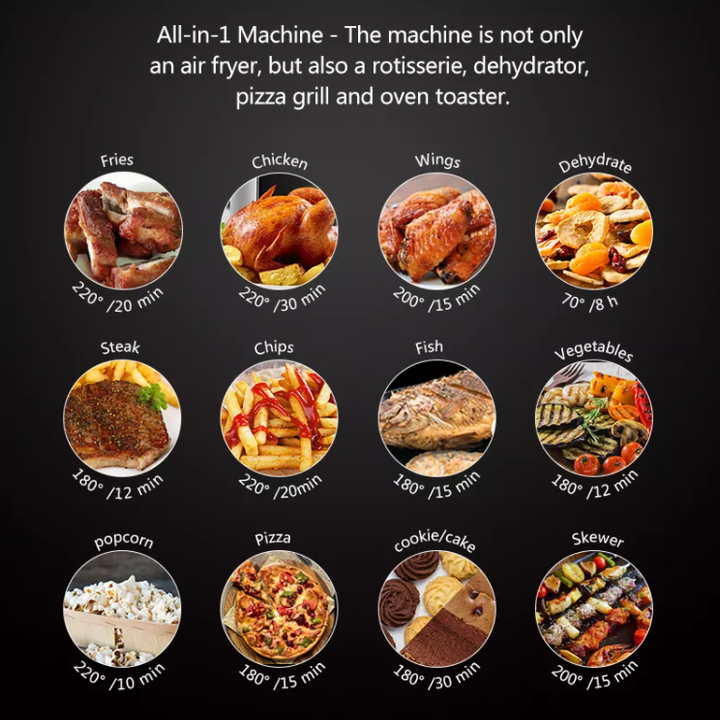 Làm bánh mì, máy khử nước, máy nướng bánh pizza, có thể hoàn thành nhiều món ăn ngon khác nhau, chẳng hạn như cánh gà quay, khoai tây chiên, pizza, bít tết và như thế; Một dụng cụ cần thiết trong nhà bếp, gần như có thể đáp ứng mọi yêu cầu cho con người.