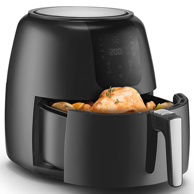 Công nghệ chiên không dầu mới cho phép bạn chiên rán, nướng và quay thực phẩm nhanh chóng, ít chất béo hơn so với nồi chiên thông thường nhờ việc sử dụng ít dầu hoặc không dùng dầu, cũng tạo ra ít mùi hơn và ít chất béo hơn an toàn cho sức khỏe, giảm thiểu nguy cơ mắc các bệnh béo phì, mỡ má thừa lipid.
