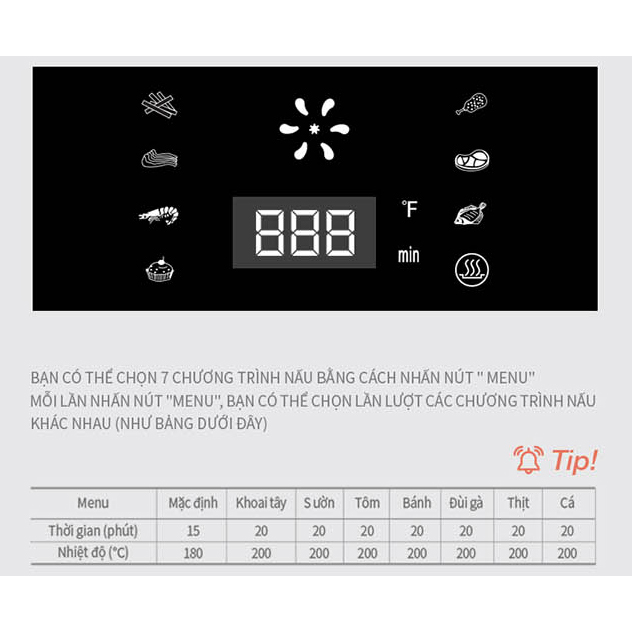 Công nghệ chiên chân không, làm nóng 360 độ với công suất 1800W làm chín thực phẩm bằng cách đốt nóng không khí bên trong nồi, kết hợp quạt thổi giúp lan tỏa luồng khí nóng luân chuyển nhanh và mạnh đều khắp bề mặt thực phẩm. Nhờ đó, mà thực phẩm khi bạn chiên bằng nồi chiên không dầu sẽ được chín vàng đều, thơm ngon hơn so với chiên rán thông thường.
