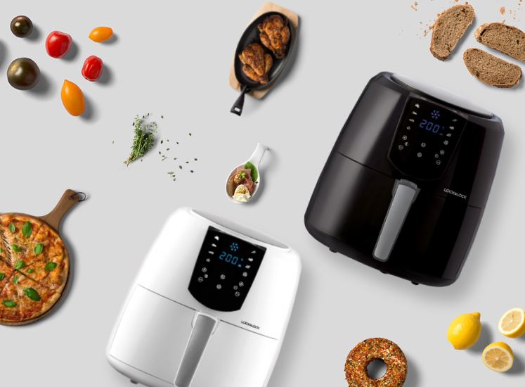 Nồi Chiên Không Dầu Điện Tử Lock&Lock EJF357 5.2 Lít - Hàng Chính Hãng, Điều Chỉnh Nhiệt Độ, Hẹn Giờ, Giữ Ấm, Kèm Chảo Nướng: