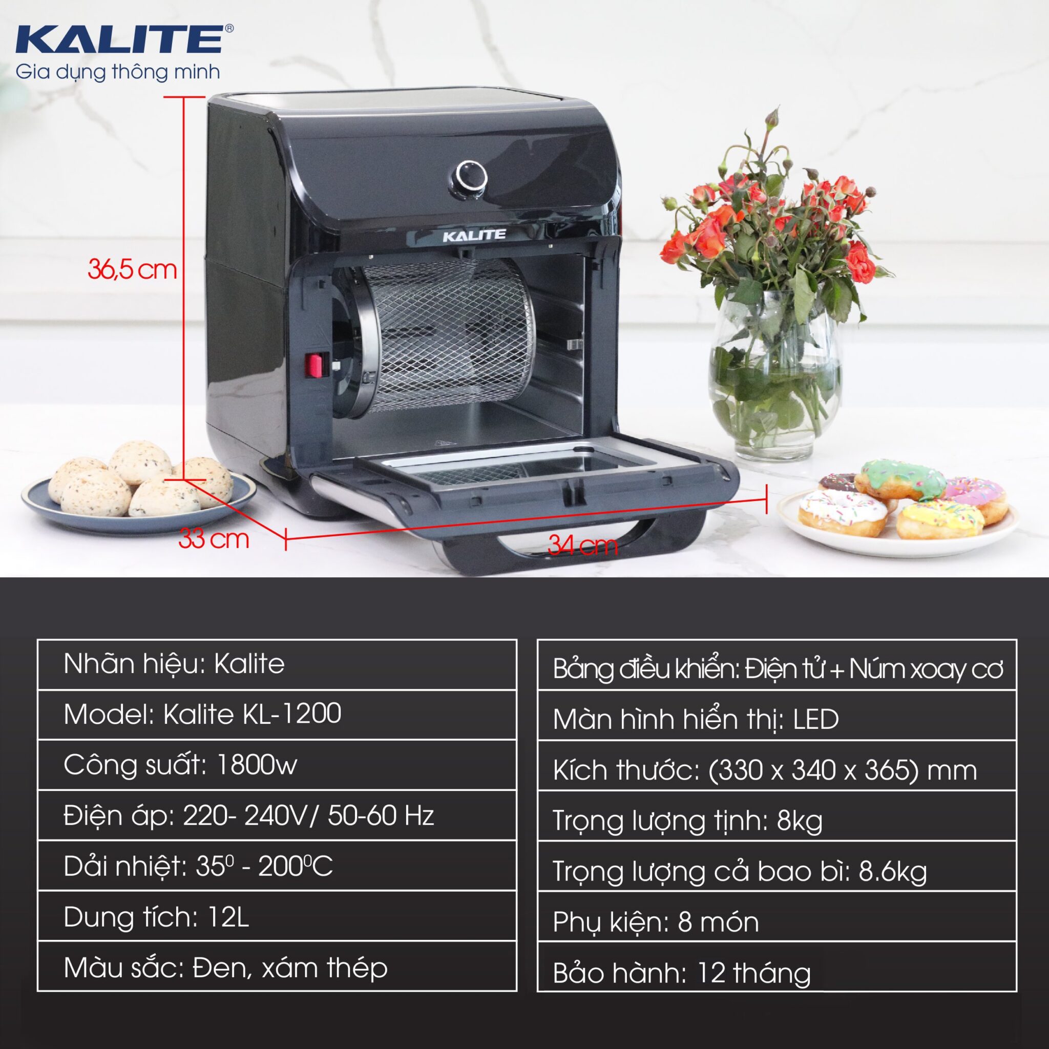 Nồi chiên không dầu Kalite KL-1200 (12 lít) – Thay thế 9 loại thiết bị nhà bếp – Hntech.vn