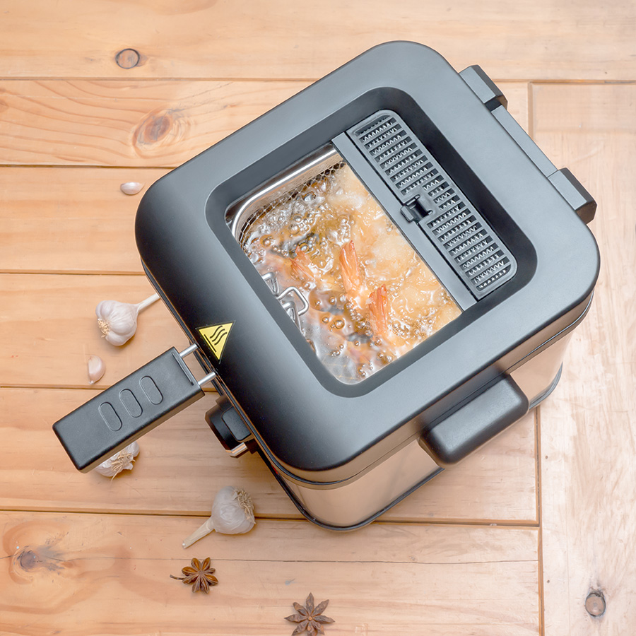 Nồi chiên được trang bị nắp với cửa quan sát giúp bạn ngăn chặn việc nấu quá mức và bị văng bắn ra ngoài.