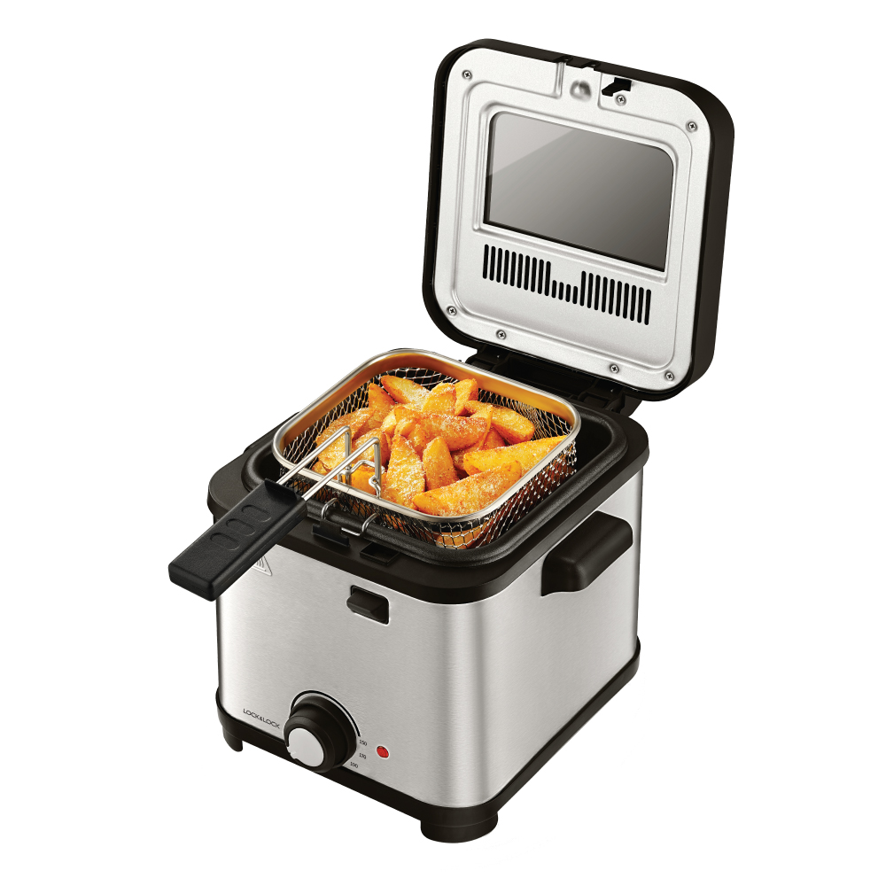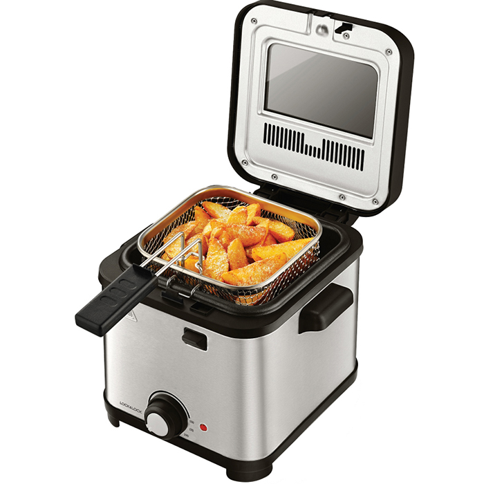 Nồi Chiên Ngập Dầu Lock&Lock EJF716SLV có thiết kế nhỏ gọn tận dụng hiệu quả không gian căn bếp. Nắp với cửa quan sát giúp bạn ngăn chặn được việc nấu quá mức và bị văng bắn ra ngoài. Bạn có thể nâng giỏ chiên lên và làm ráo dầu nhờ vào móc tích hợp trong khi mở nắp. Nấu dễ dàng nhiều món ăn với núm điều chỉnh nhiệt độ.