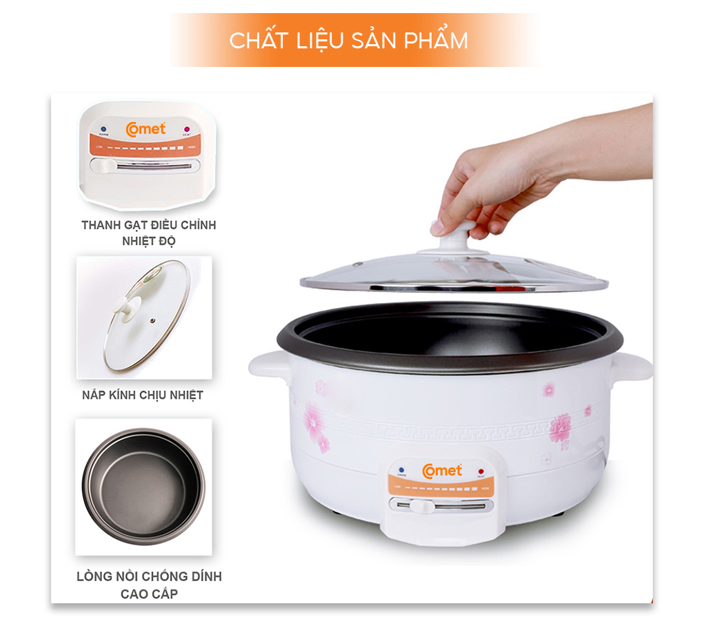 ✨Nồi lẩu điện Comet CM7731 – Dung tích 3.5L, công suất 1300W, chống dính, nắp kính chịu nhiệt, bảo hành 12 tháng - Hàng chính hãng