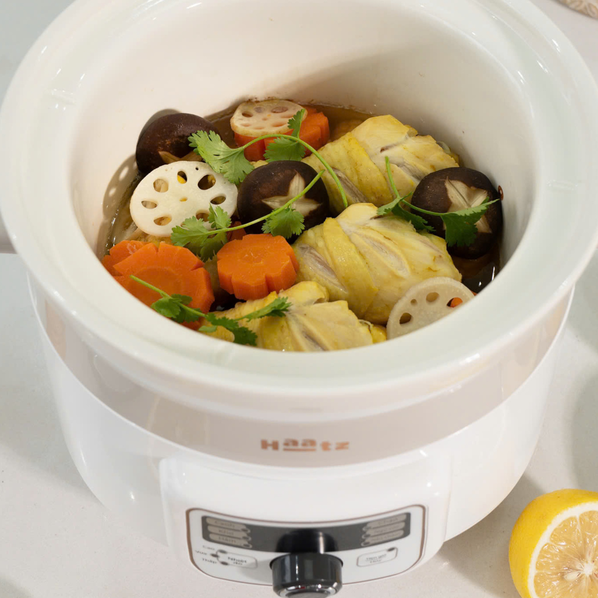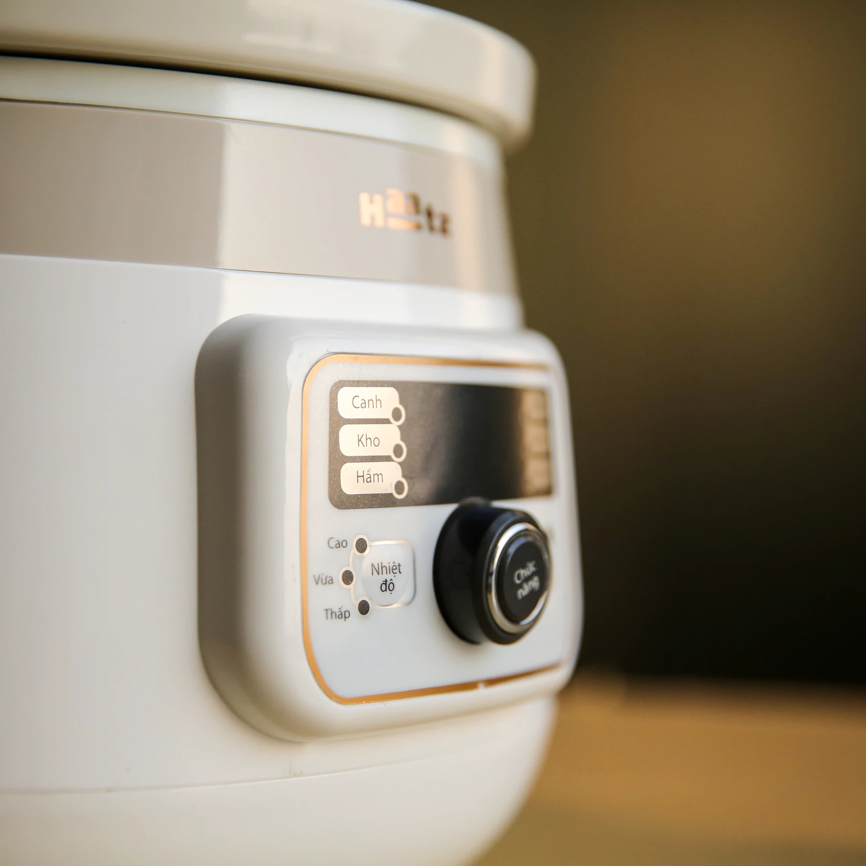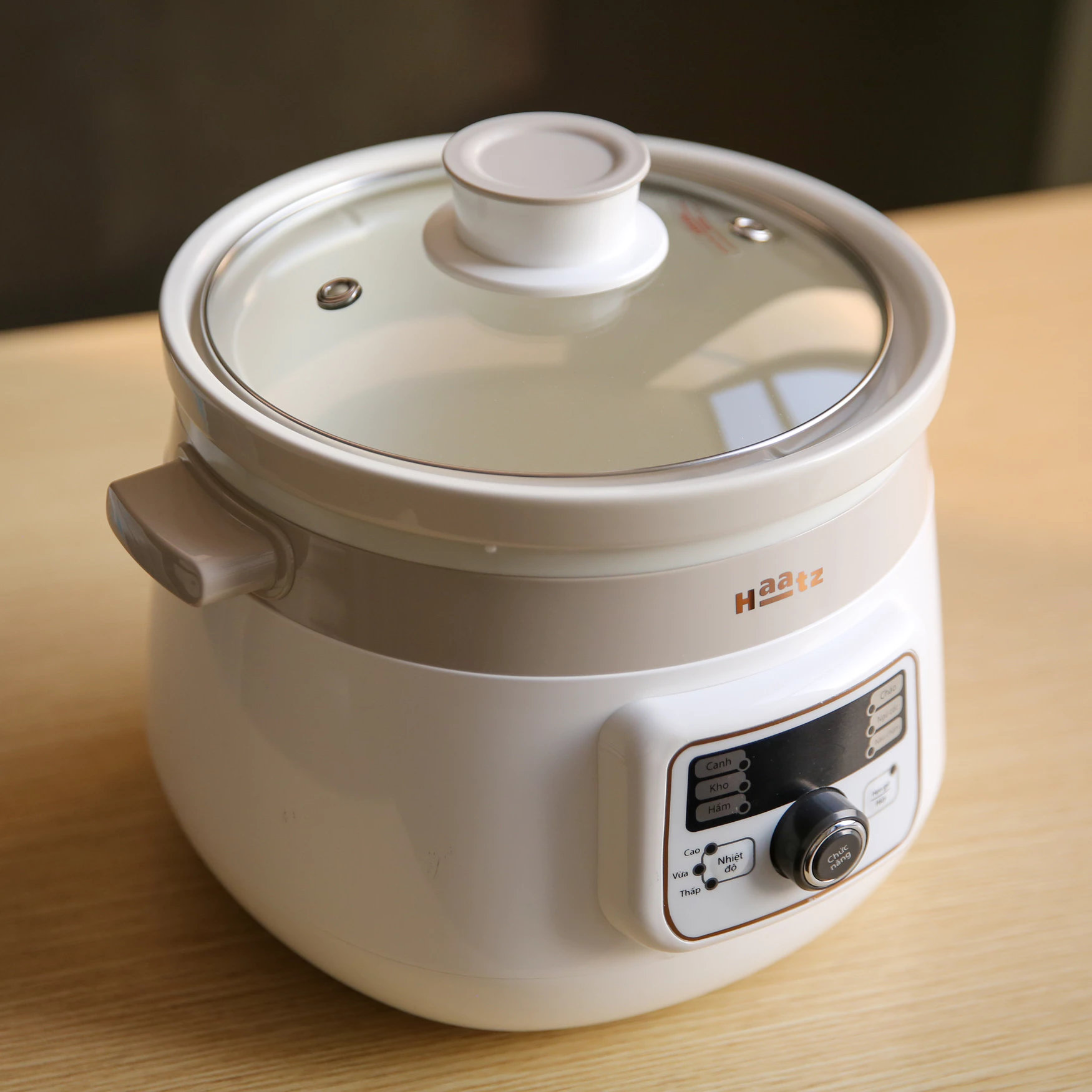 - Nồi nấu chậm Haatz 3L là trợ thủ đắc lực cho gia đình 2-4 người, đa năng, dễ dùng, thiết kế sang trọng.