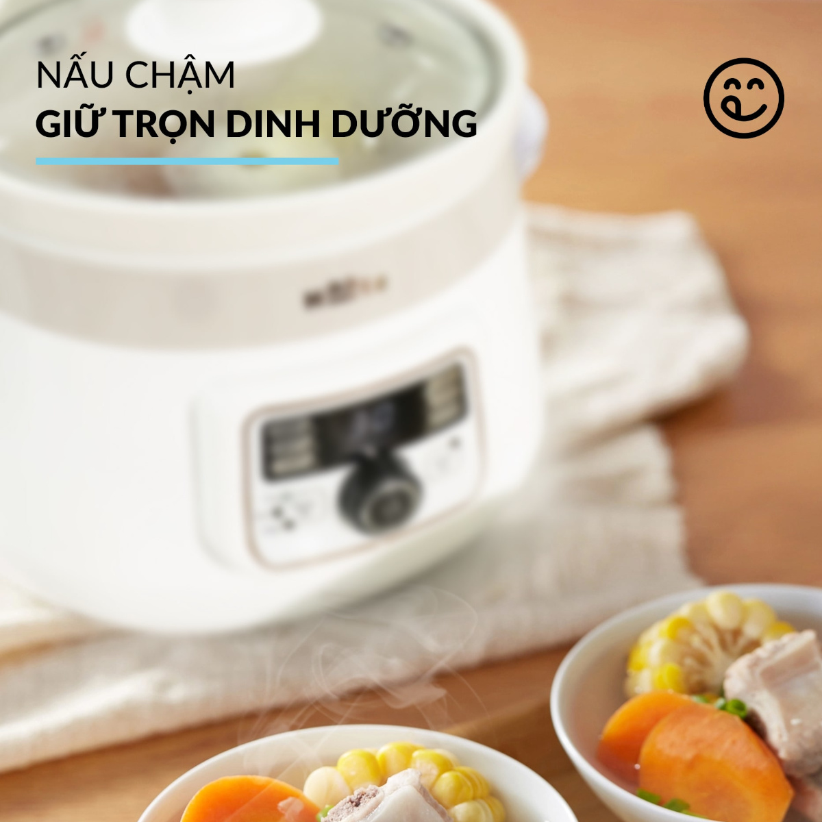 Đặc điểm nổi bật - Dung tích 3 lít thích hợp sử dụng nấu cháo, súp, món ninh/hầm,... cho trẻ nhỏ, người già. - Công suất 255W kết hợp phương pháp gia nhiệt quanh lòng nồi, chế