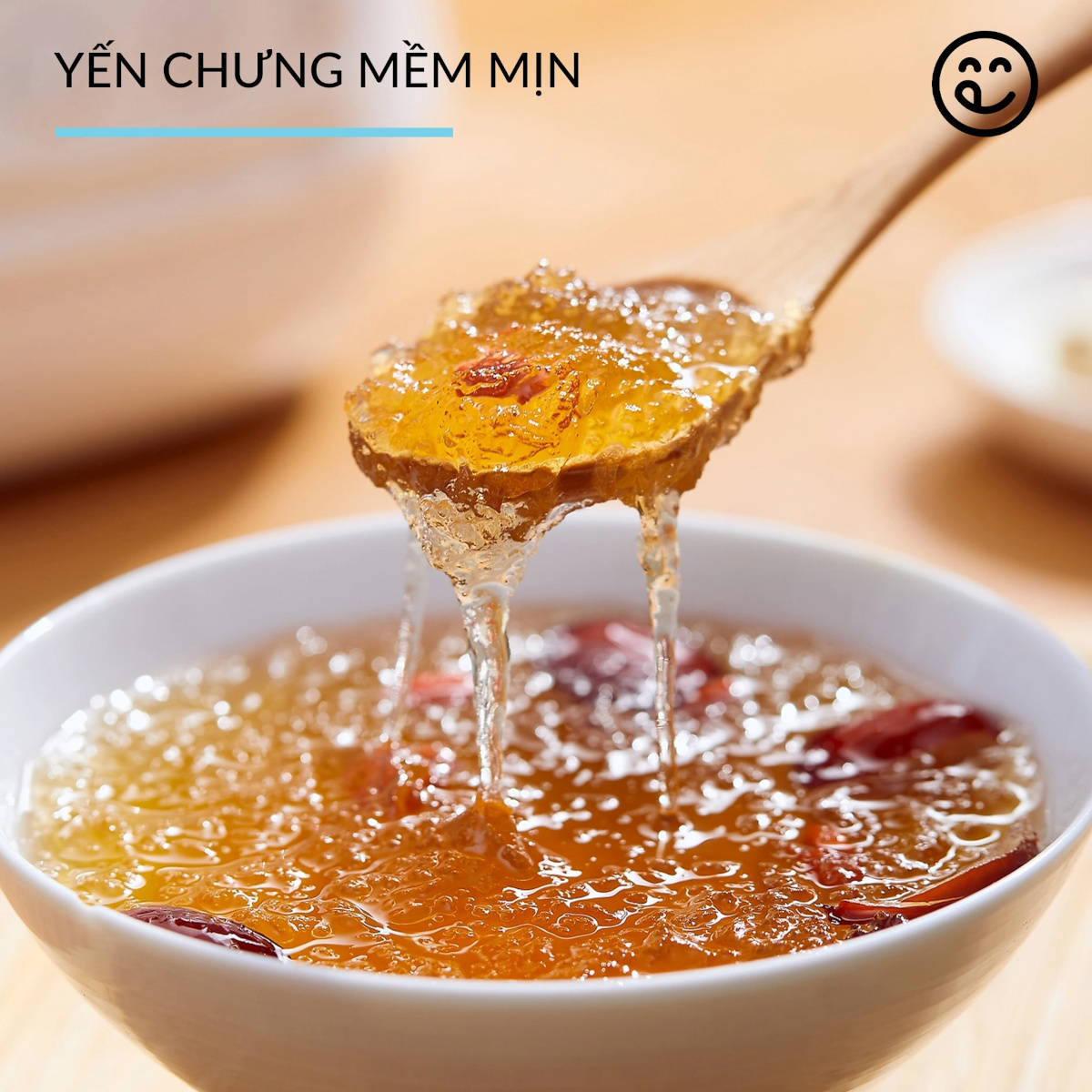 Công suất 200W Điện áp đầu vào 220V-240V/50Hz Dung tích 3,5 Lít Màu sắc màu trắng Đa chức năng : Kho cá, hầm xương, chưng yến, sắc thuốc bắc, nấu cháo ... Bảng điều