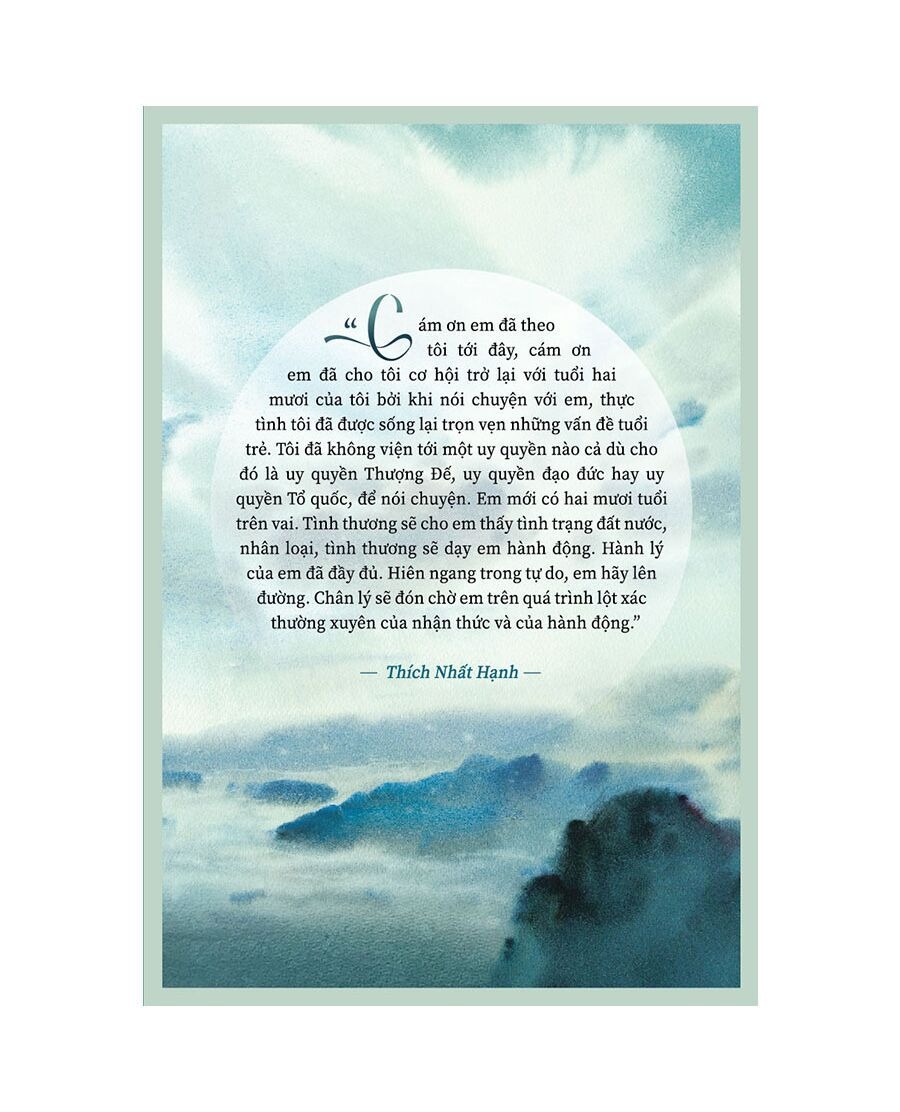 Những lời chia sẻ của Thiền Sư thấm sâu vào lòng những người trẻ tuổi, khơi gợi những ước mơ hoài bão, khơi dậy sức sống dạt dào trong trái tim của họ, làm bừng cháy những yêu thương. Nói với tuổi hai mươi tìm thấy điểm đồng điệu trong lời thơ của Tố Hữu: "20 tuổi hồn quay trong gió bão/ gân đang xanh và thớ thịt căng da", và sức trẻ đó phải được tỏa sáng trong tình yêu và trách nhiệm với đất nước, trong lý tưởng và khát vọng, trong tình yêu và cuộc sống của mình.