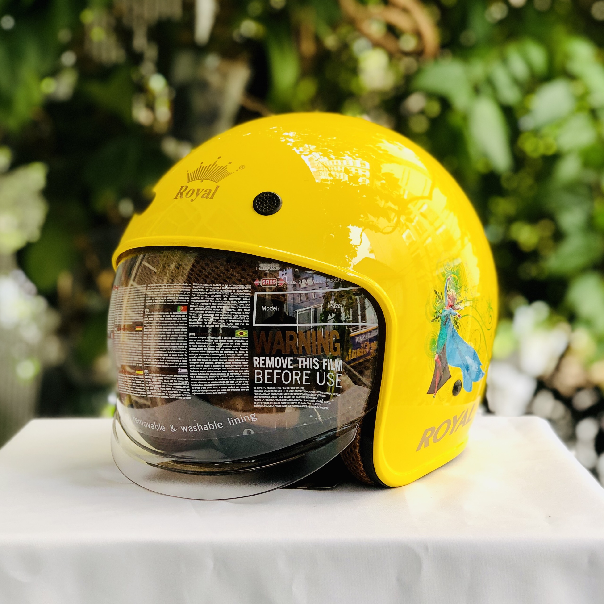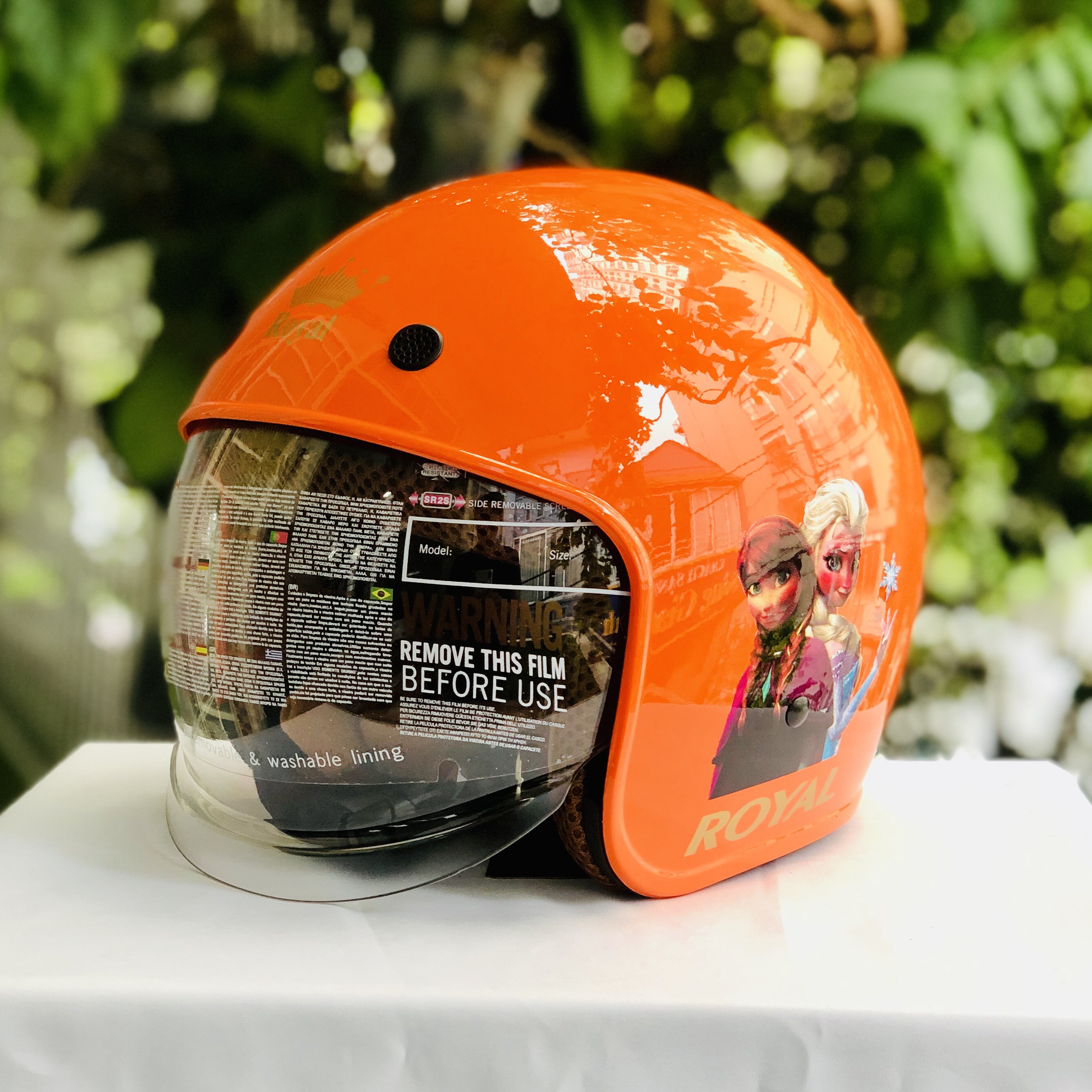 - Size mũ M139 KID chỉ có 1 size S cho trẻ có vòng đầu từ 48-52cm. LƯU Ý: Vì nón 3/4 là phải đội ôm sát mặt mới an toàn, k bị rớt ra khi có rủi ro xảy ra. Hệ thống Nón Trùm hướng dẫn bạn cách đội cần 2 bên nón dang rộng ra rồi đội vào, tháo ra cũng cầm 2 bên dang rộng ra rồi lấy ra ạ. Có nhiều khách chưa đội nón 3/4 bao giờ nên chưa quen nên cảm giác bị ép 2 gò má nhưng thực tế đó mới đúng chuẩn đội nón 3/4. BẢNG MÀU CỦA MŨ BẢO HIỂM KÍNH ÂM ROYAL M139 KID CHÍNH SÁCH BẢO HÀNH - ĐỔI TRẢ TẠI NÓN TRÙM