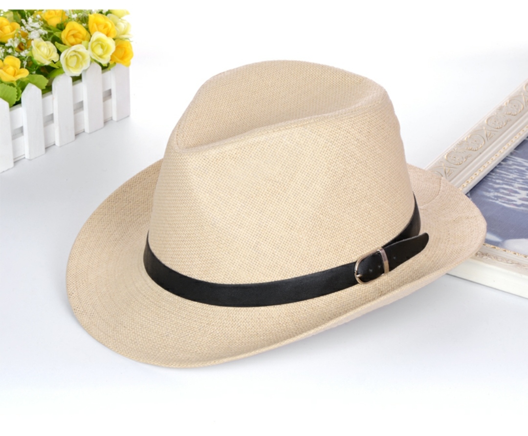 Nón phớt mũ cao bồi nam nữ vành nhỏ cói đai đen da nâu Chất liệu cói