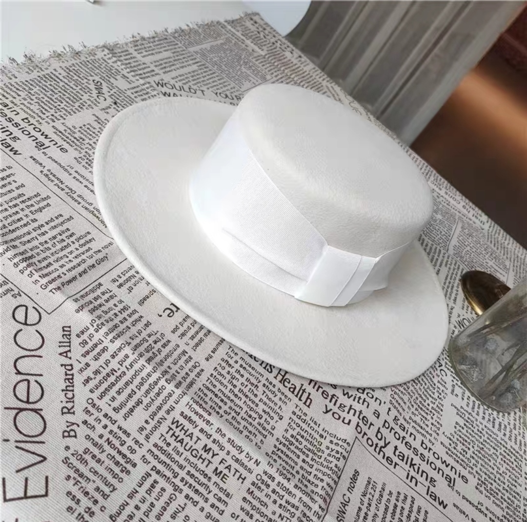 Nón cao bồi vành bằng mũ rộng vành nỉ dạ phối đai trắng thời trang Hàn Quốc Chất liệu nỉ Kiểu dáng vành bằng đai trắng Nón đi biển mũ vành nhỏ thời trang du lịch dã ngoại