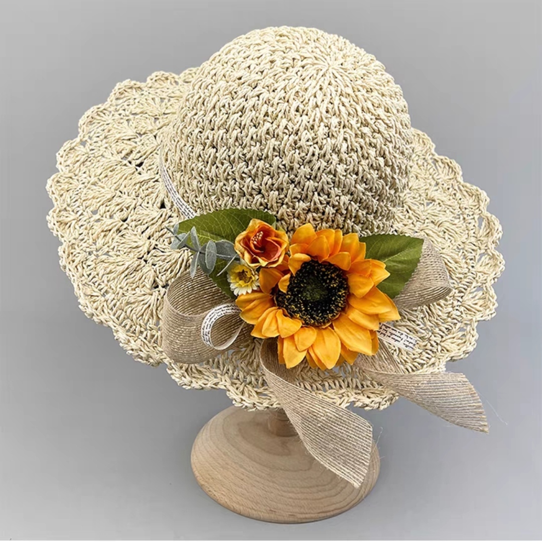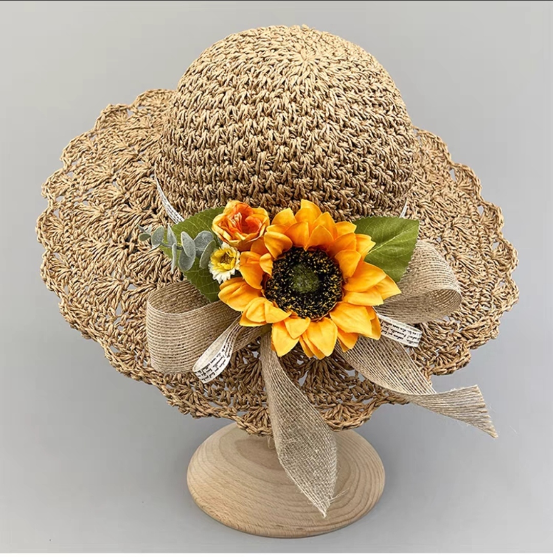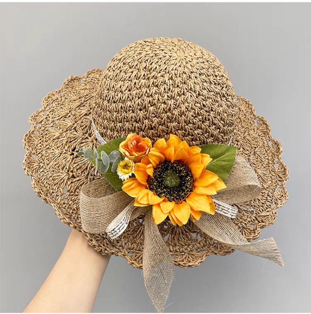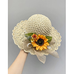 Mũ rộng vành nón đi biển chống nắng du lịch dã ngoại gấp gọn thoáng mát gắn hoa vàng xinh thời trang Hàn Quốc