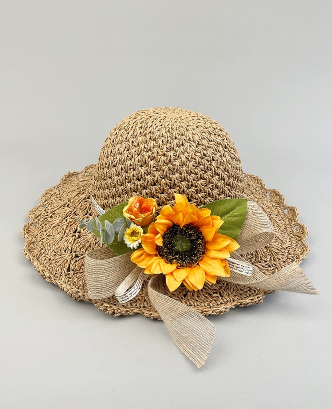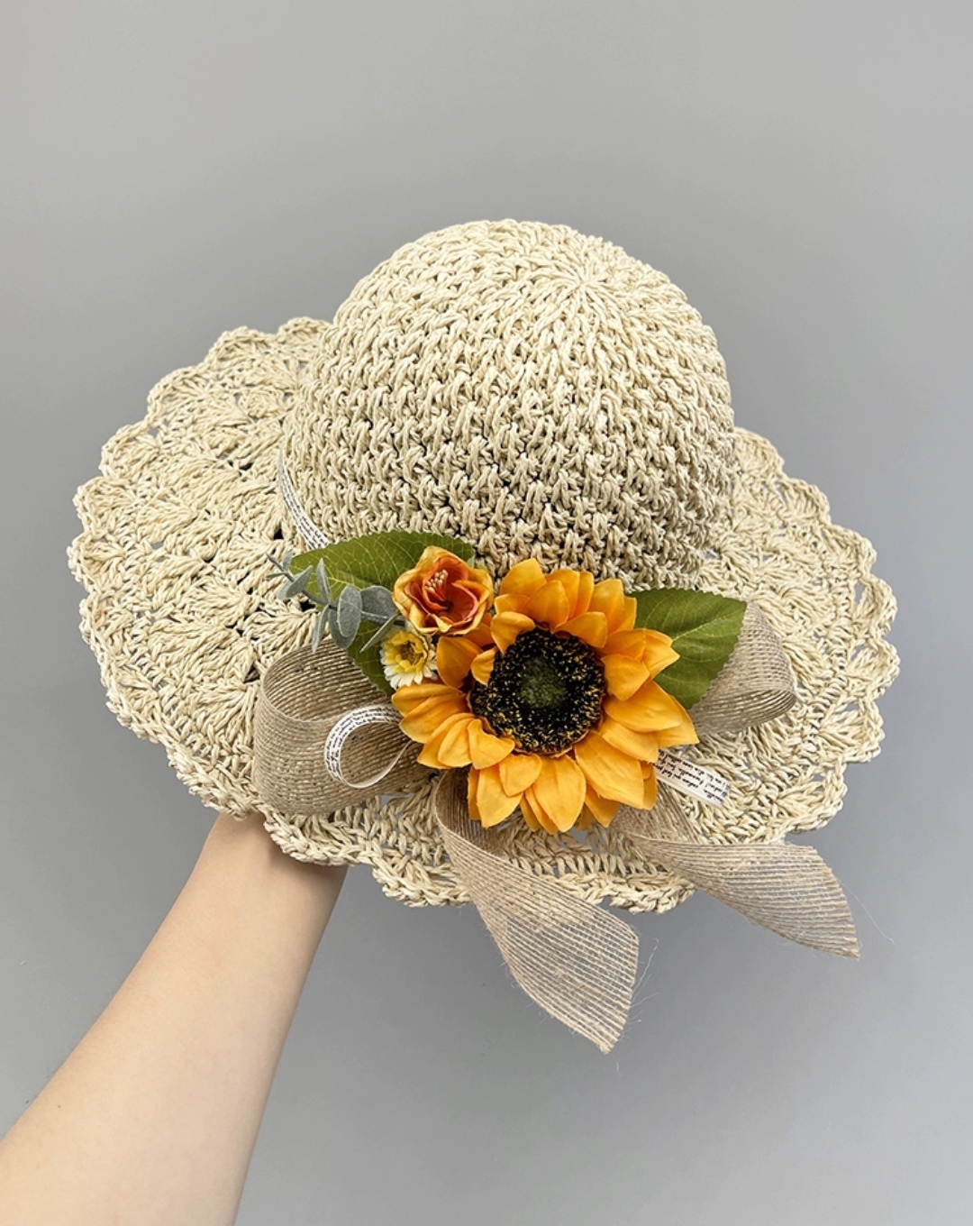 Mũ đi biển đẹp nón rộng vành nhỏ đai hoa lá thời trang Hàn Quốc Chất liệu cói
