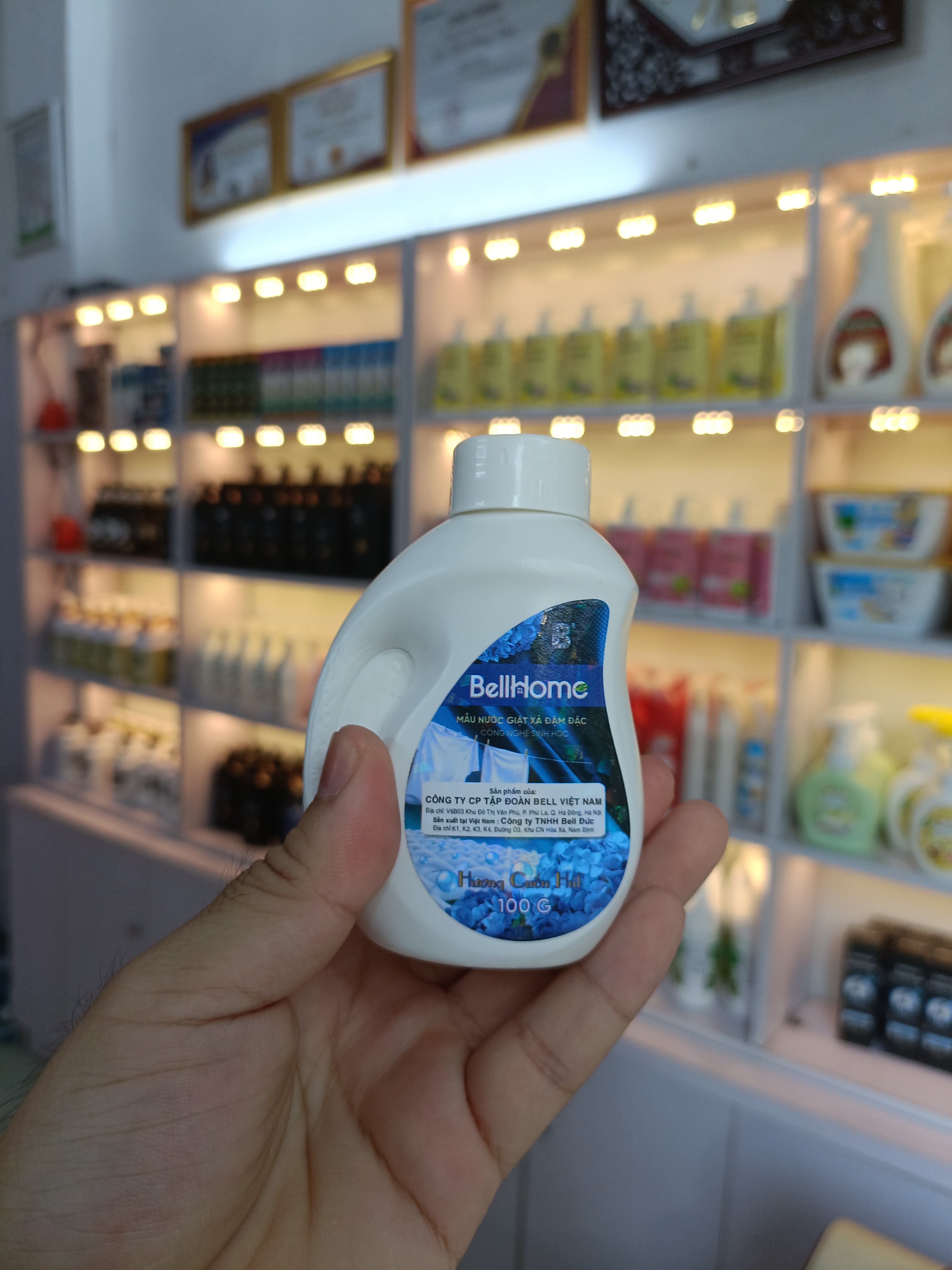 Mua tại TiktokNước Giặt Xả Công Nghệ Sinh Học Bell Home - Ra Mắt Sản Phẩm Tiên Phong Ứng Dụng Công Nghệ Sản Xuất Nước Hoa Trong Nước Giặt ĐẶC ĐIỂM NỔI BẬT CỦA NƯỚC GIẶT SINH HỌC CAO CẤP BELL HOME 100G Chiết xuất từ 20 đến 30 loại hương hoa trái quả, tạo nên tầng tầng lớp lớp hương Mỗi hương thơm trong nước giặt công nghệ sinh học Bell Home được chiết xuất từ 20 đến 30 loại hương hoa trái quả và tạo nên tầng tầng lớp lớp hương. Có thể cảm nhận được mùi hoa lan, hoa hồng, hoa huệ, hoa oải hương rồi hoa đào và các loại hoa trong cùng 1 sản phẩm. Hương thơm là dạng Flavor, dạng mùi thơm trong thực phẩm Nước giặt sinh học Bell Home với chiết suất nhiều bọt từ quả bồ hòn, rất thiên nhiên và làm sạch quần áo hiệu quả. Ngoài ra, hương thơm trong nước giặt sử dụng dạng Flavor, dạng mùi thơm dùng trong thực phẩm nên rất an toàn, không gây dị ứng và ảnh hưởng hệ hô hấp. Công nghệ lưu hương nước hoa cao cấp sang trọng Công nghệ hương đa tầng tiên tiến trong sản xuất nước hoa áp dụng trong Nước giặt công nghệ sinh học Bell Home là được thừa hưởng từ Bell Flavors & Fragrances, công ty hàng đầu về hương liệu và chất thơm trên thế giới, là vị trí mà công ty đã đạt được gần 200 năm qua. Quần áo ngâm qua đêm không bị hôi thối, trời nồm không mùi khó chịu Nhờ ứng dụng công nghệ sinh học và khả năng lưu hương gần như tương đương với các sản phẩm nước hoa cao cấp sang trọng, nước giặt công nghệ sinh học Bell Home giúp quần áo ngâm qua đêm không bị hôi thối, trời nồm không mùi khó chịu. Chất bẩn gom lại 1 góc, hạn chế bám bẩn trở lại Nhờ ứng dụng công nghệ sinh học mà các chất bẩn sau khi giặt sẽ được gom thành 1 khối, hạn chế tình trạng bị bám bẩn trở lại Không bị thẩm thấu ngược nên sau khi giặt chất bẩn sẽ lắng xuống dưới, còn ở trên nước vẫn trong giúp áo trắng ko bị bẩn, ố vàng. Chiết xuất từ vảy cá và ngọc trai, làm mềm và bảo vệ sợi vải Nhờ ứng dụng công nghệ lá sen với các hoạt chất được chiết xuất từ vảy cá và Ngọc trai, phủ trên bề mặt sẽ giúp bảo vệ quần áo, không bị sờn, không bị nhăn, không phai màu, thậm chí càng giặt càng sáng màu như mới. Công nghệ Nano vàng, Nano bạc giúp bảo vệ da tay, chống lão hóa, diệt khuẩn Công nghệ Nano vàng, nano bạc được áp dụng trong nước giặt Bell Home là công trình nghiên cứu khoa học của Viện nghiên cứu Nano và được thế giới công nhận, được cục sở hữu trí tuệ bảo vệ, cho tác dụng dưỡng da tay, mềm da tay, chống lão hóa da tay, sát khuẩn, diệt khuẩn và kháng khuẩn tuyệt vời. Chiết xuất thiên nhiên, an toàn cho da tay Nước giặt sinh học Bell Home triệt tiêu hoàn toàn phản ứng thủy sinh học vì chứa tinh dầu maca, tinh dầu hạnh nhân, tinh dầu dừa và tinh dầu cafe giúp bảo vệ da tay, dưỡng da, mềm da và trắng da, đảm bảo an toàn cho da tay, kể cả những làn da nhạy cảm nhất. Không gây tắc cống, bảo vệ môi trường Nhờ áp dụng công nghệ chiết xuất - dùng cồn thực phẩm để hòa tan sản phẩm lên đến 99% và công nghệ sinh học hữu cơ không hóa chất, nước thải sau khi giặt không gây tắc cống và có thể sử dụng để tưới cây, tưới rau… Nguồn gốc thực vật, an toàn cho người sử dụng Sản phẩm có đầy đủ hồ sơ giấy tờ nguyên vật liệu với nguồn gốc từ thực vật, có dấu chứng nhận của Sở thương mại Đức, đã được kiểm nghiệm trực tiếp và đạt tiêu chí cao trên vải lụa Hà Đông, với gốc tơ tằm thiên nhiên, khó tính mà không phải nước giặt nào cũng dùng được. THÔNG TIN CHI TIẾT SẢN PHẨM Tên sản phẩm: Nước Giặt Xả Công Nghệ Sinh Học Bell Home Thương hiệu: Bell Home Xuất xứ: Việt Nam Dung tích: 3,2 Kg Thành phần chính: Linear Alkylbenzene Sulphonic Acids, Sodium lauryl ether sulfate, Sodium hydroxide, Sodium sulfate, Natri Benzoate, Hydroxypropyl Cellulose, Hương thơm (Bồ Hòn, Nước Hoa…), Color… Mùi hương: Hương sang trọng, hương tinh tế, hương cuốn hút HƯỚNG DẪN SỬ DỤNG Đổ nước giặt vào nắp với liều lượng theo hướng dẫn. Thoa một lượng nhỏ nước giặt trực tiếp lên vết bẩn. Đổ phần nước giặt còn lại trong nắp vào máy giặt cùng với quần áo. Hướng dẫn bảo quản: Nơi thoáng mát, tránh ánh nắng trực tiếp CAM KẾT CỦA BELL HOME Bell Home - Sản phẩm chính hãng tốt nhất từ nhà máy của Tập đoàn Bell Việt Nam sở hữu toàn bộ khoa học công nghệ tiên tiến từ Đức, nguyên liệu nhập khẩu Đức với đầy đủ tiêu chuẩn chất lượng sẽ là sự lựa chọn thông minh để chăm sóc tổ ấm gia đình bạn