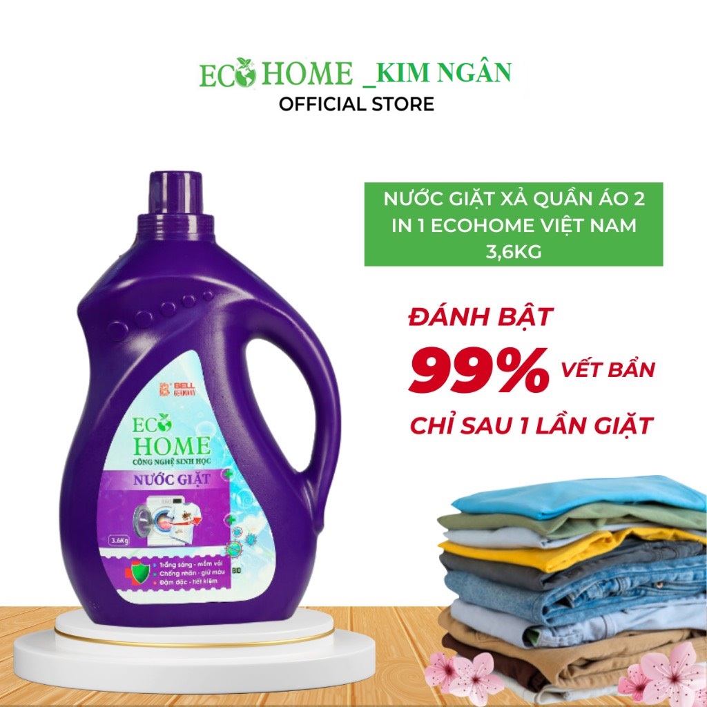 Nước Giặt Xả Quần Áo 2 In1 Ecohome Việt Nam 3,6KG Hương Thơm Mát Can Tím