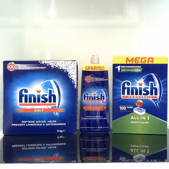 - Finish là thương hiệu rửa chén đĩa tự động số 1 Thế giới (được giới thiệu bởi hầu hết các thương hiệu máy rửa chén trên toàn Thế giới) Muối rửa chén Finish Dishwasher