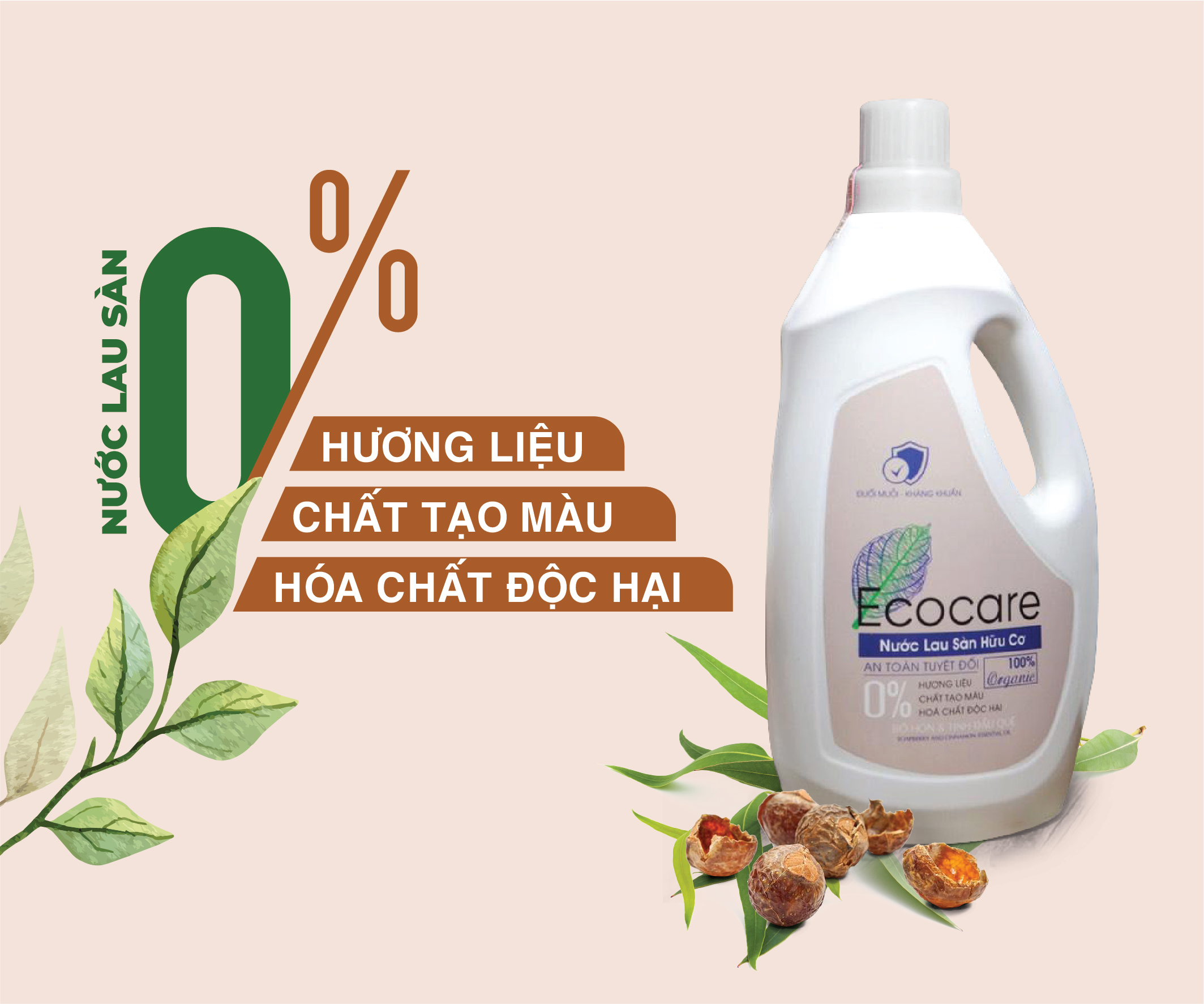 - Sản phẩm Nước lau sàn hữu cơ Bồ hòn Ecocare cam kết: 0% hương liệu, 0% chất tạo màu, 0% chất hóa học độc hại -Hoàn toàn thân thiện với môi trường, sử dụng bao bì là nhựa tái chế