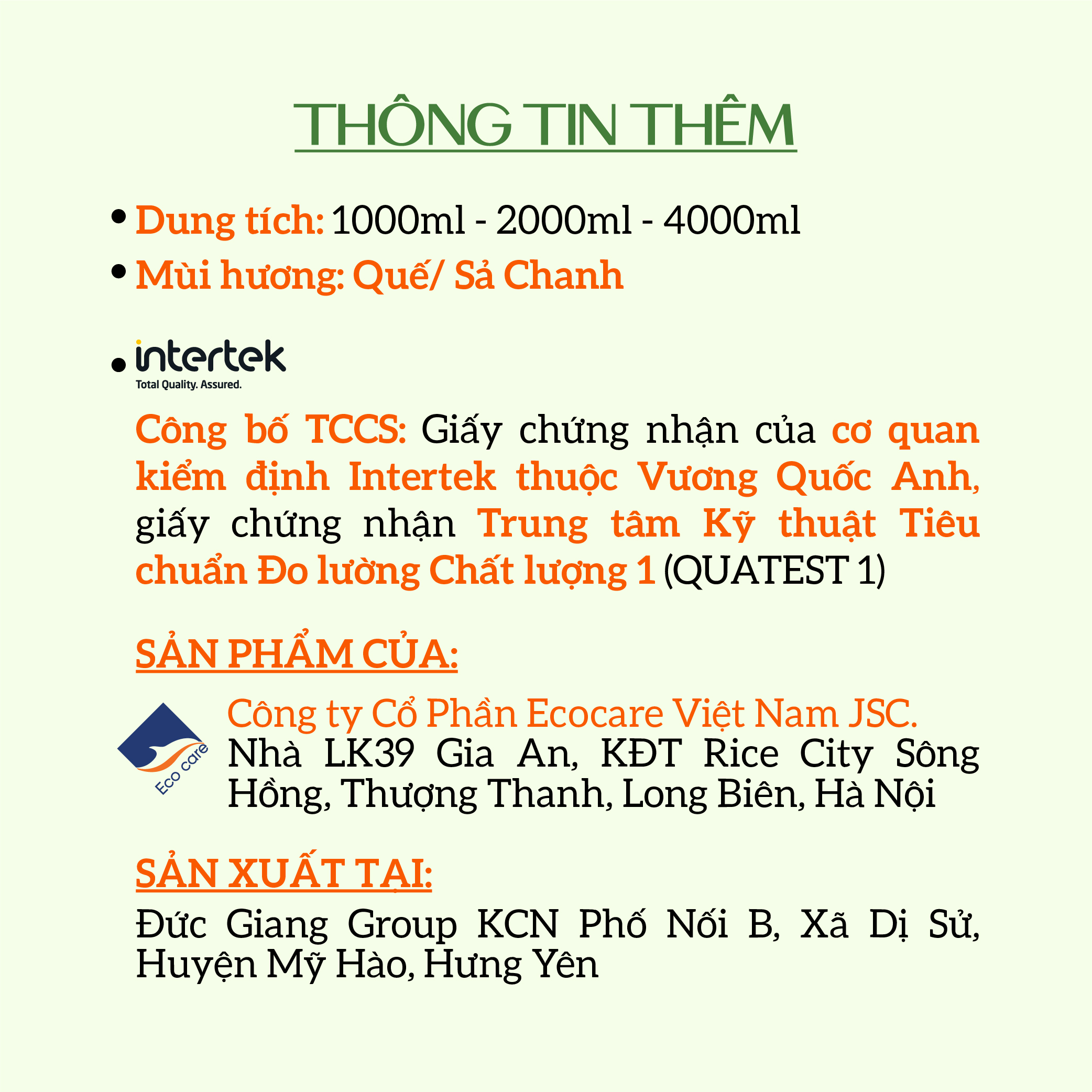 ✨Nước lau sàn hữu cơ Bồ hòn Ecocare tinh dầu Quế 1000ml