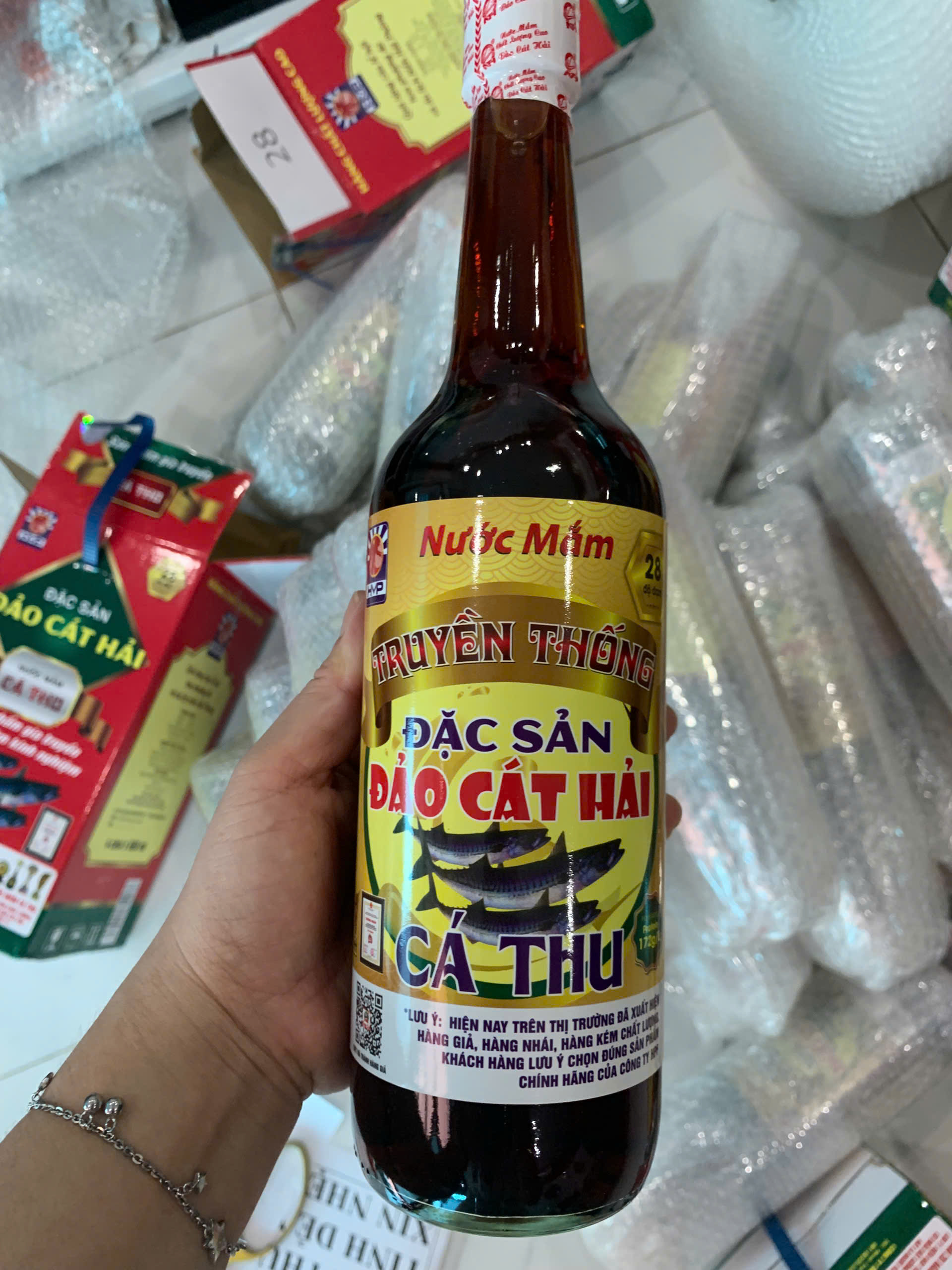 Nước Mắm Cá Thu truyền thống 29 độ đạm, hộp 4 chai, dung tích 650ml/chai. THÔNG TIN SẢN PHẦM : - Nước mắm cá thu được sản xuất theo công thức cổ truyền, phân giải