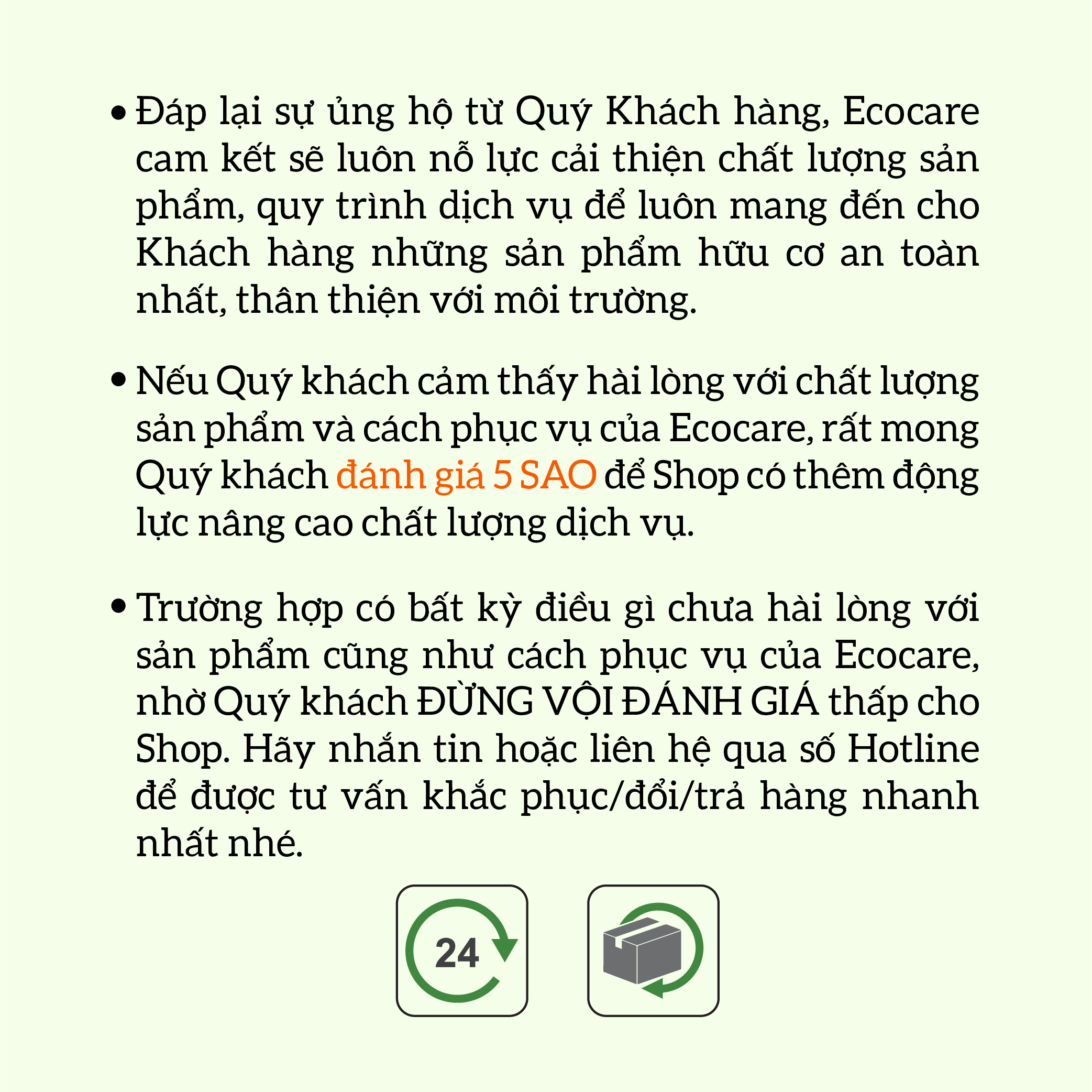 QUÝ KHÁCH VUI LÒNG CHỌN "SHIP HOẢ TỐC" ĐỂ NHẬN HÀNG TRONG VÒNG 2 GIỜ THÔNG ĐIỆP TỪ NHÀ SẢN XUẤT ECOCARE: - Trước tiên, Công ty Ecocare xin cảm ơn Quý