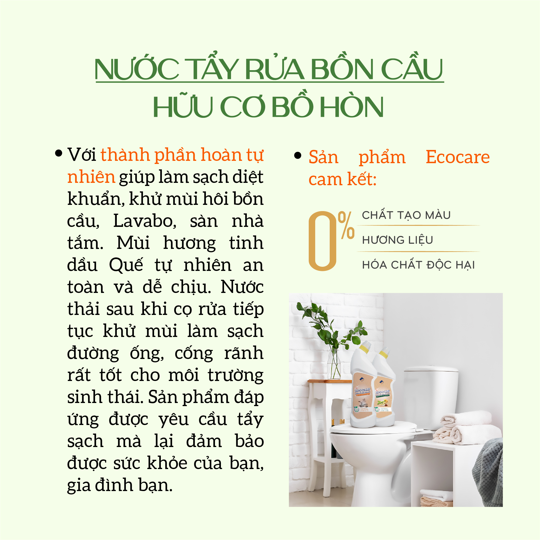 - Trước tiên, Ecocare xin cảm ơn Quý Khách hàng đã tin tưởng lựa chọn sản phẩm Nước tẩy rửa bồn cầu Hữu cơ Ecocare 1L