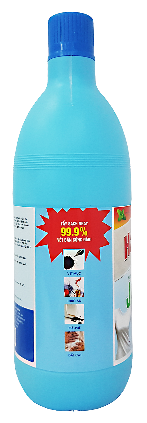 Thông tin sản phẩm: Nước tẩy trắng quần áo Javel Hando 1L - Công dụng: Với hoạt chất hypoclorite giúp đánh bật nhanh chóng các vết bẩn, vết ố của cafe, nước tương, xì dầu,