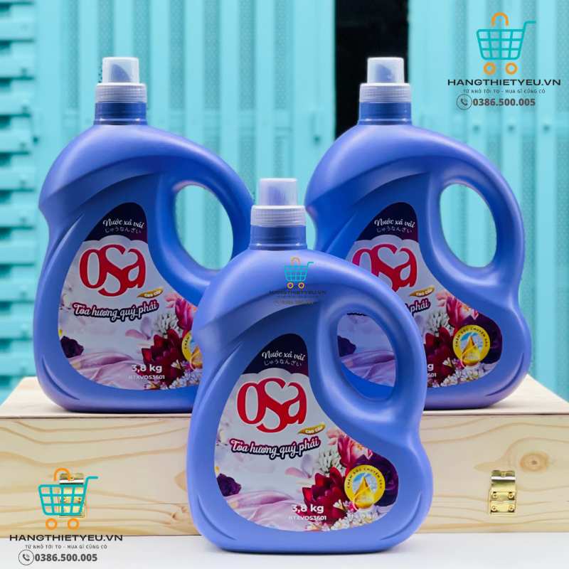 NƯỚC XẢ VẢI OSA CAO CẤP TỎA HƯƠNG QUÝ PHÁI 3.8Kg (4 can/thùng) NƯỚC XẢ VẢI OSA DƯỠNG VẢI BỀN MÀU 3.8Kg (4 can/thùng) NƯỚC XẢ VẢI OSA DỊU ÊM THƠM MÁT 3.8Kg (4 can/thùng)