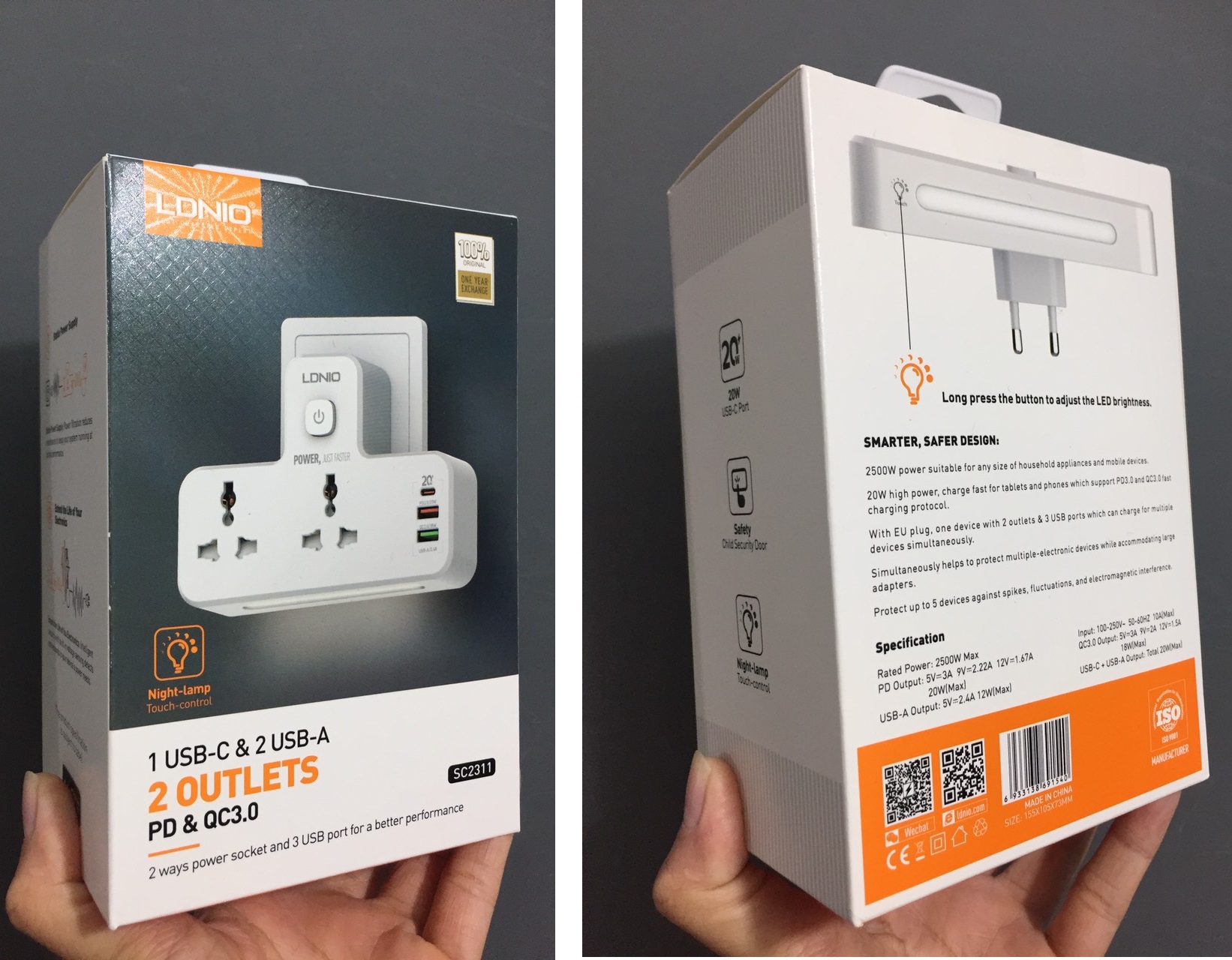 Ổ cắm điện đa năng SC2311 kiêm sạc nhanh PD 20W và đèn ngủ tự bật tắt.#ocamdiendanang #ldnio