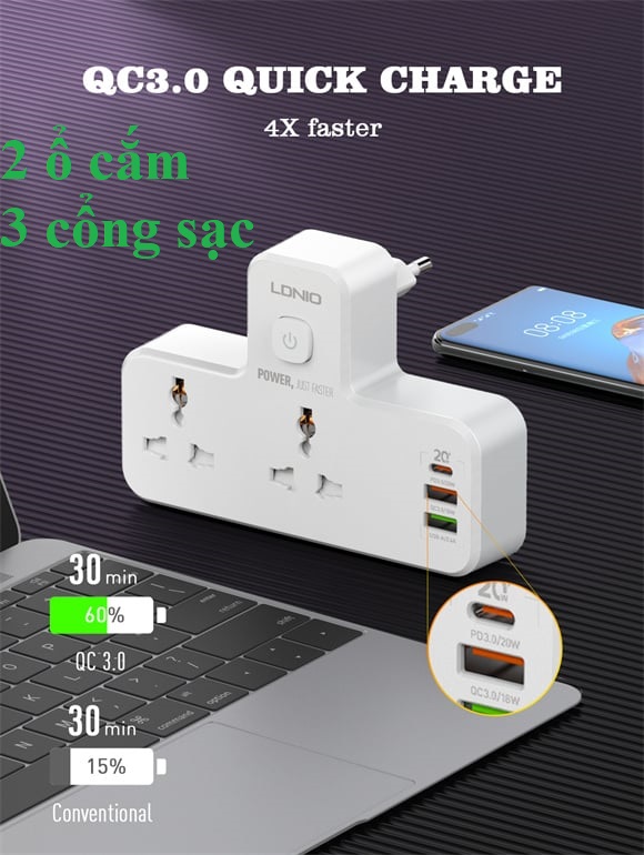 ✨Ổ cắm đa năng 2500W hỗ trợ sạc nhanh QC18W PD20W LDNIO SC2311 _ Hàng chính hãng