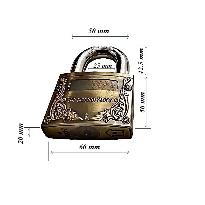 - Size: 60mm, - Nguyên liệu = đồng thau, - Trọng lượng: 385g, - Kèm theo 3 chìa khóa
