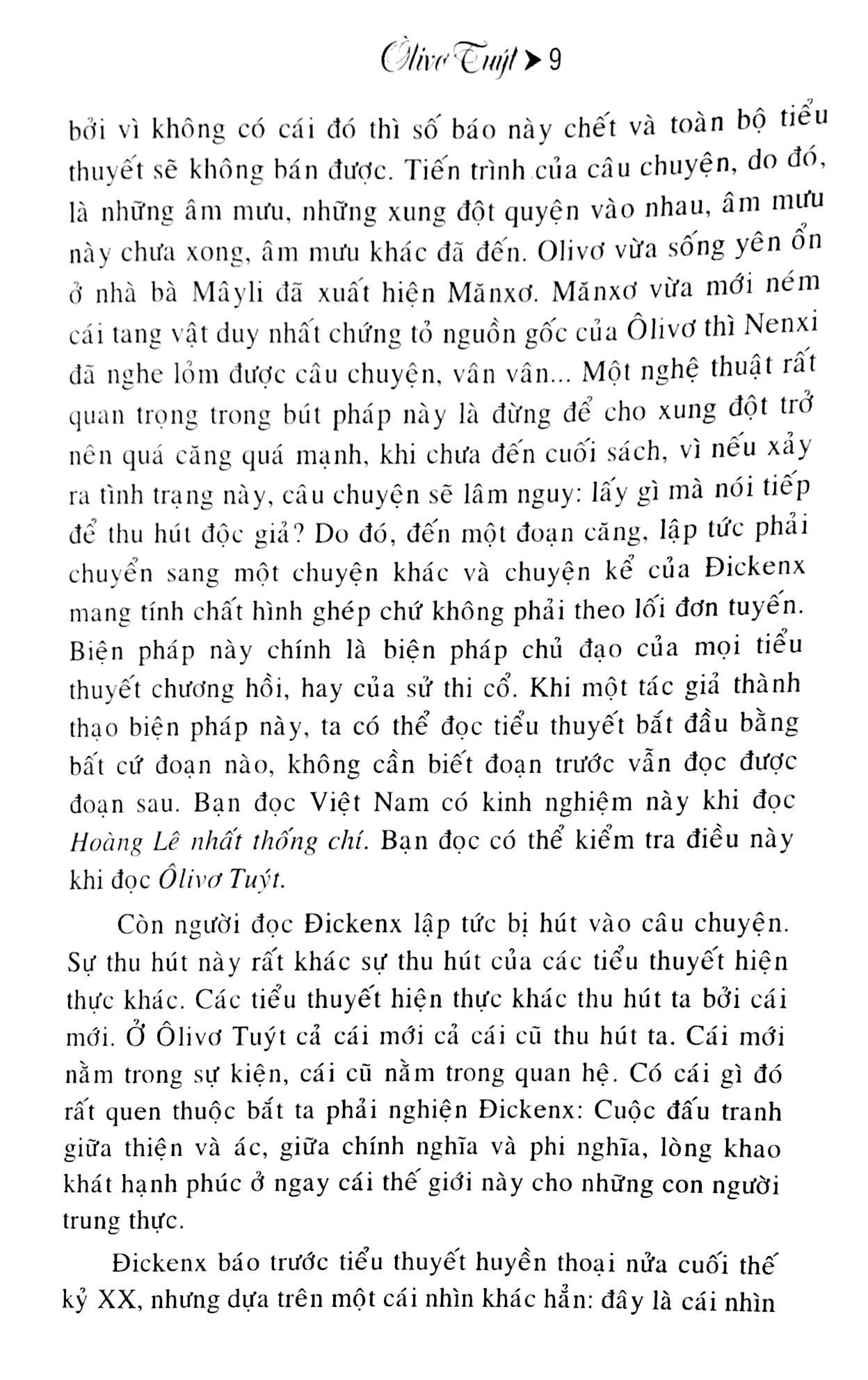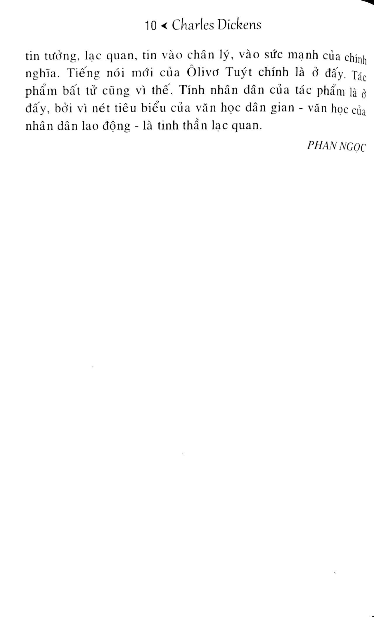 Đọc Ôlivơ Tuýt, bạn sẽ thấy ở đó là cuộc đấu tranh giữa thiện và ác, giữa chính nghĩa và phi nghĩa, toát lên trên hết là lòng khao khát hạnh phúc của những con người lương thiện.