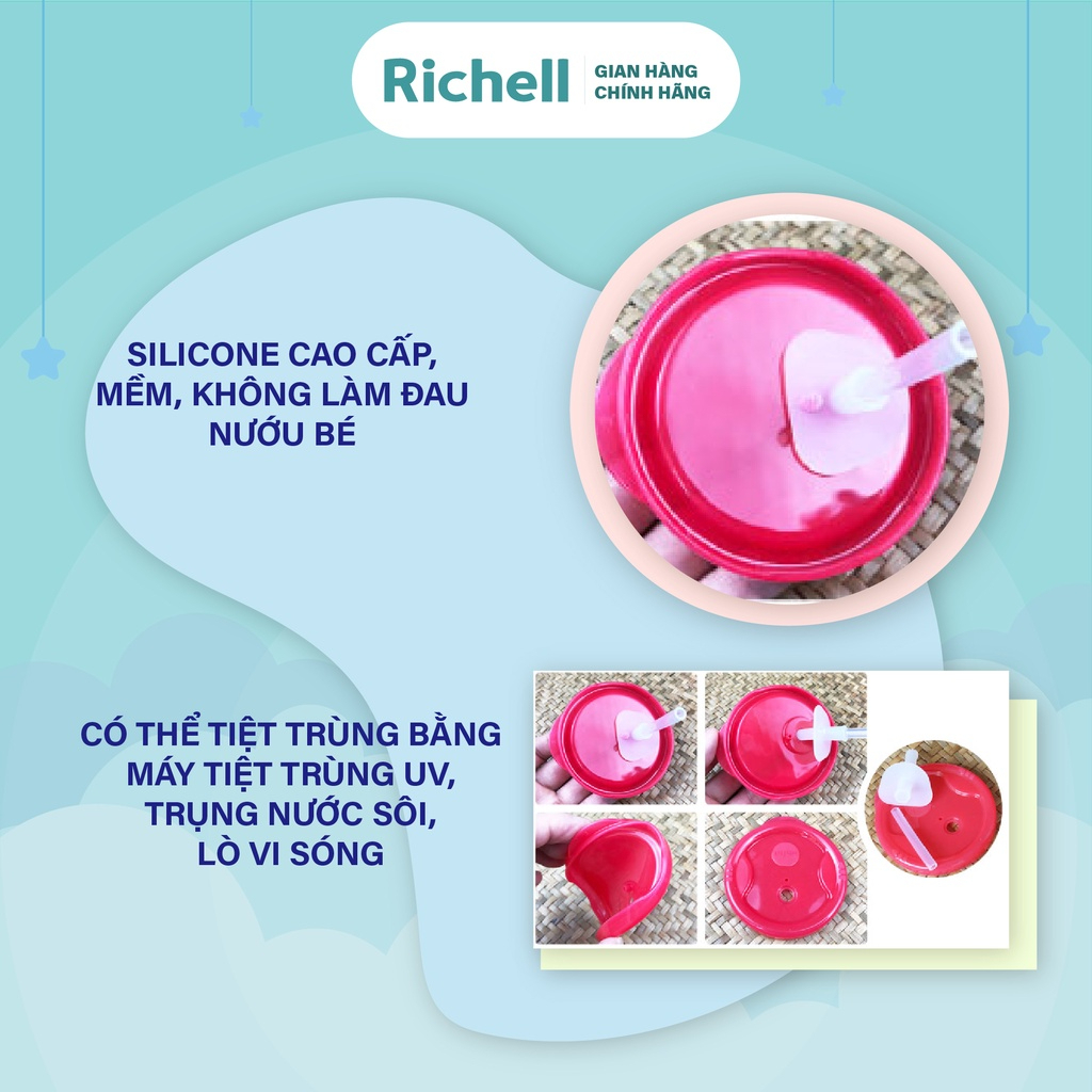 Bình ống hút chống đổ 200ml Richell, cốc ống hút đầu silicone mềm, chống sặc hiệu quả