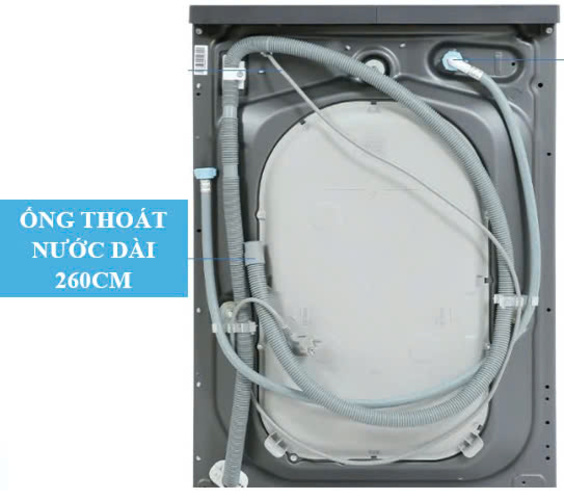 Lưu ý: khi lắp đặt ống thoát nước của máy giặt cửa ngang cao từ 60-90cm so với chân máy (nếu lắp đặt thấp hơn, nước vào máy sẽ không giữ lại trong lồng giặt mà chảy ra đướng ống thoát hết).