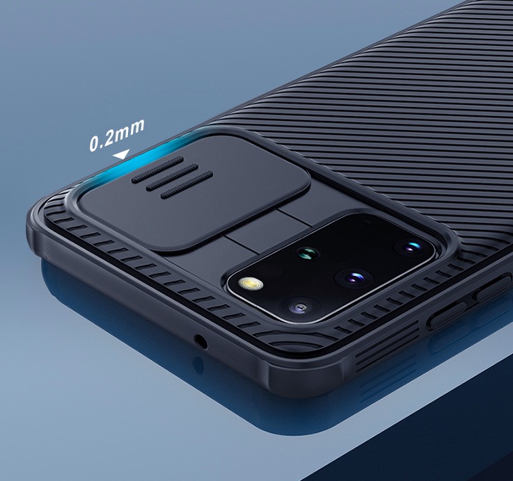 Ốp lưng chống sốc bảo vệ Camera cho SamSung Galaxy S20 Plus hiệu Nillkin Camshield (chống sốc cực tốt, chất liệu cao cấp, có khung & nắp đậy bảo vệ Camera) TRANG BỊ NẮP BẢO VỆ CAMERA Ốp lưng thiết kế với phần nắp che camera độ mỏng 0.2mm có khả năng kéo vào / ra giúp bảo vệ camera, chống trầy chống bụi hiệu quả. Bào vệ chiếc SamSung Galaxy S20 Plus một cách an toàn.