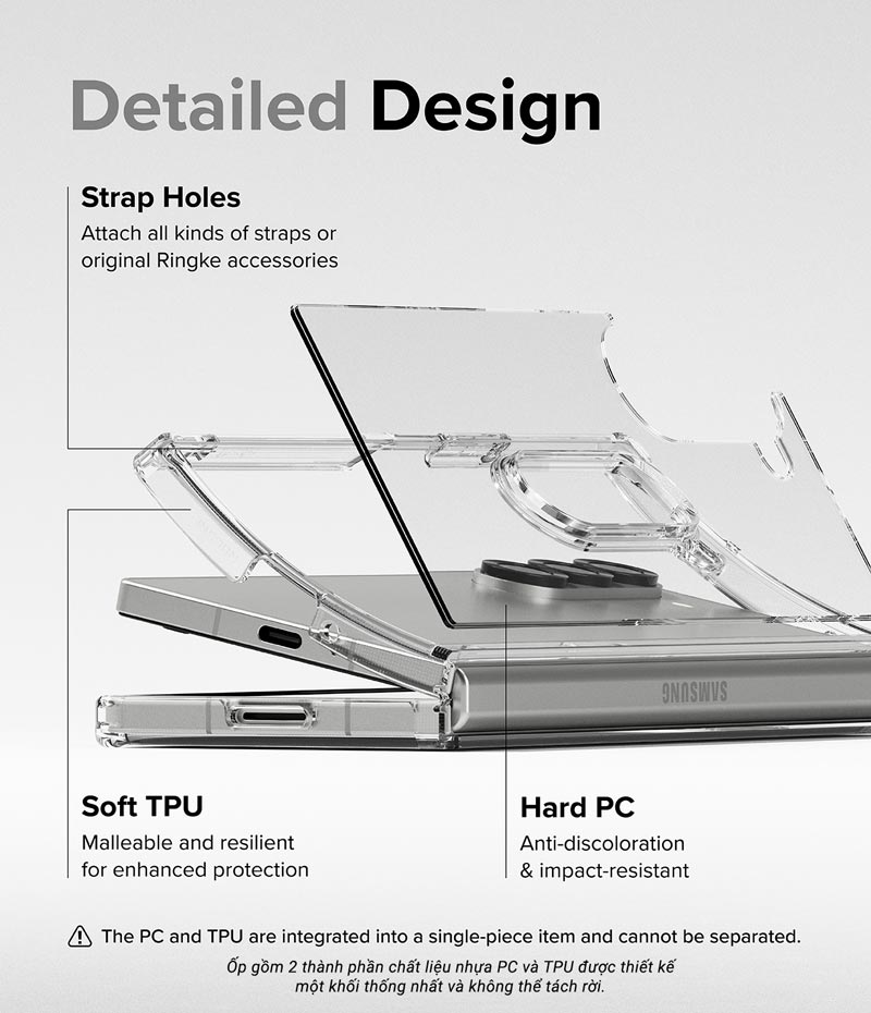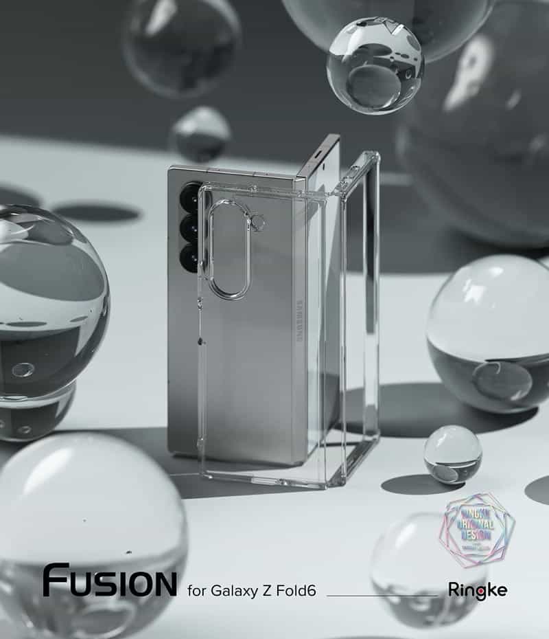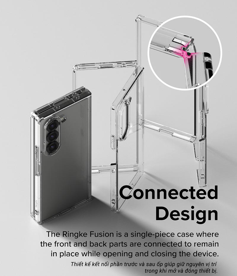 Ốp lưng Samsung Galaxy Z Fold 6 RINGKE Fusion có thiết kế trong suốt và kết nối phần trên và phần dưới ốp lưng, giúp giữ nguyên vị trí trong khi mở và đóng thiết bị.