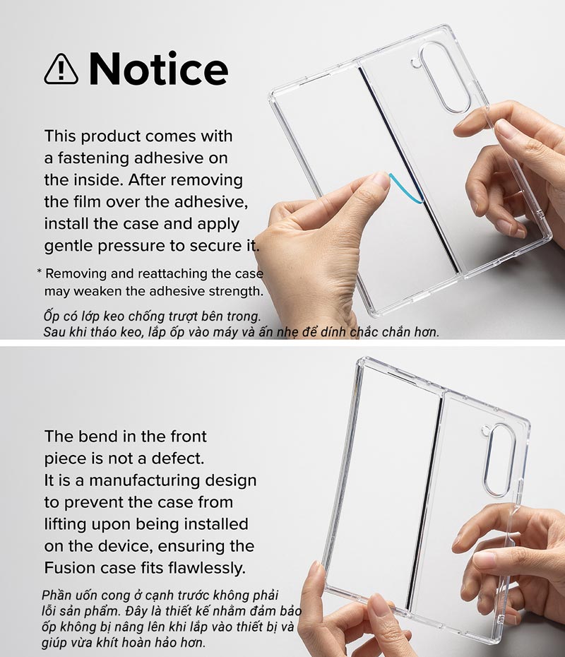 Phần uốn cong ở cạnh trước ốp lưng không phải lỗi sản phẩm. Đây là thiết kế nhằm đảm bảo ốp không bị nâng lên khi lắp vào thiết bị và giúp vừa khít hoàn hảo hơn.