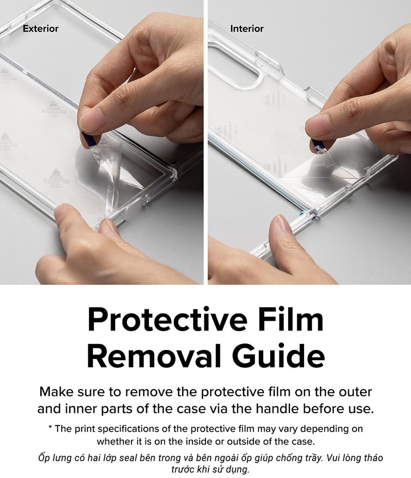 Ốp có hai lớp seal bên trong và bên ngoài, vui lòng tháo seal trước khi sử dụng.