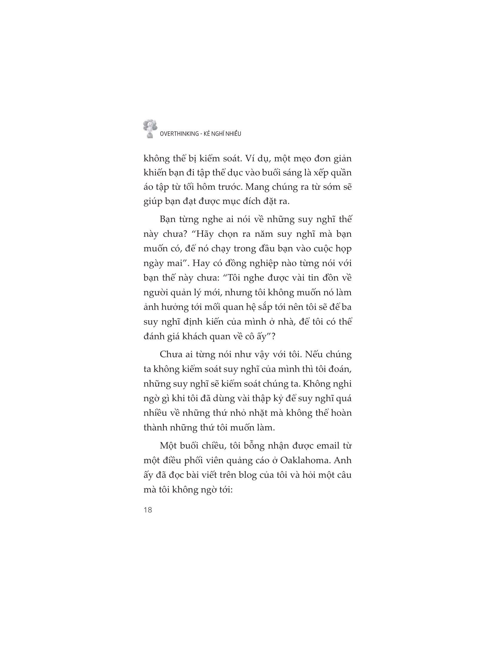 Với cuốn sách “Overthinking – Kẻ nghĩ nhiều”, bạn sẽ học được cách biến những suy nghĩ của m.ình thành hành động. Bạn có thể tận dụng thời gian, công sức và sự sáng tạo có thể tái tạo để tạo ra cuộc sống mà bạn muốn. Và nó bắt đầu bằng việc nhận ra bản chất của những suy nghĩ – là một bài hát của cuộc đời m.ình.