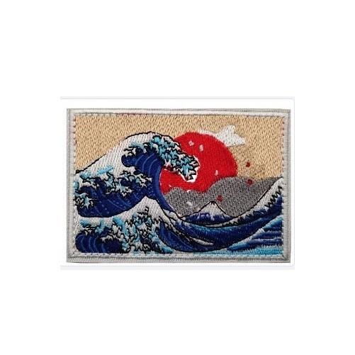 Patch_velcro mặt trời mọc dán quần áo_ba lô túi xách Kích thước: 8 x 8 cm Bao gồm 2 phần : lớp vải thêu có gai + lớp rối dùng để may vào vải Nếu ba lô , nón , quần áo có sẵn lớp rối thì chỉ việc gắn vào là được , rất nhanh và tiện dụng