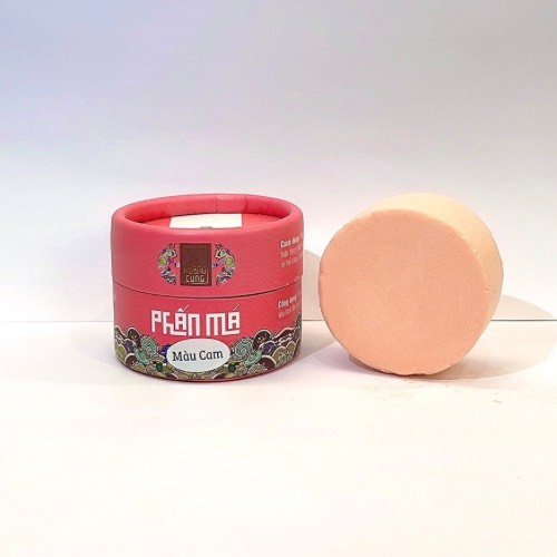 - Phấn Trang Điểm Màu Cam Phấn Nụ Hoàng Cung (25g) viên phấn hình tròn có màu trắng, màu sắc tự nhiên được bào chế từ cánh hoa.