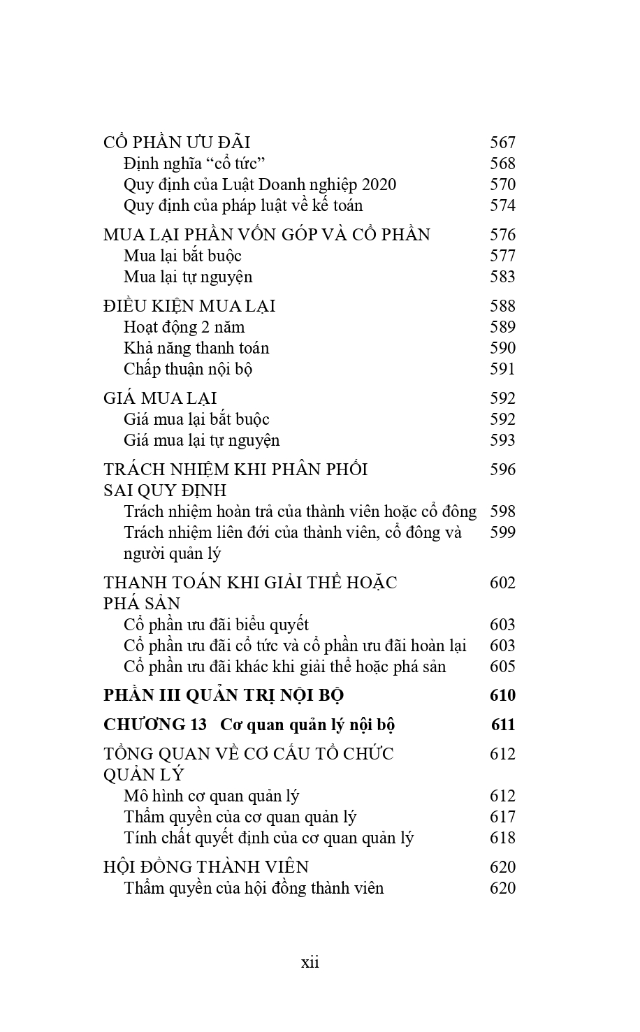 • Phần II (từ Chương 10 đến Chương 12) tập trung vào các vấn đề pháp lý liên quan đến tư cách và quyền của thành viên CTNHH và cổ đông CTCP.