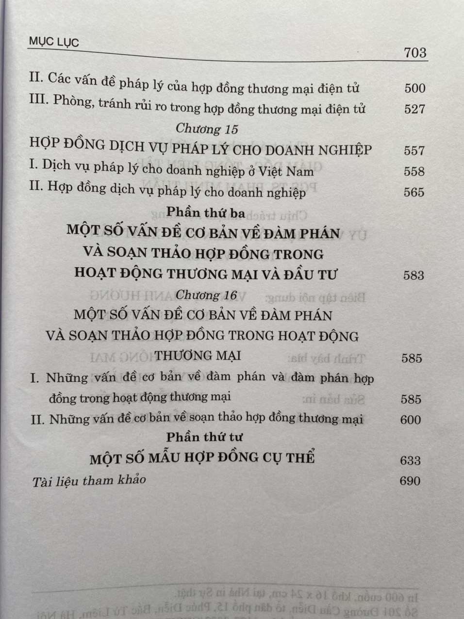 Trên cơ sở phân tích, bình luận các quy định của luật thương mại năm 2005 ,bộ luật dân sự năm 2005 cùng các văn bản pháp luật có liên quan đến chế định hợp đồng thương mại và đầu tư cuốn sách chuyên khảo pháp luật về hợp đồng trong thương mại và đầu tư cuốn sách chuyên khảo” Pháp Luật Về Hợp Đồng Trong Thương Mại Và Đầu Tư-Những Vấn Đề Pháp Lý Cơ Bản do TS. Nguyễn Thị Dung làm chủ biên, đã được xuất bản lần đầu năm 2008 và được tái bản lần thứ nhất năm 2009,lần thứ hai năm 2019,Lần thứ ba năm 2020 góp phần đáp ứng nhu cầu của bạn đọc trong tìm hiểu và áp dụng thương mại và đầu tư trong cuộc sống hằng ngày Trong lần xuất bản Thứ tư này cuốn sách để được các tác giả chỉnh sửa và cập nhật quy định liên quan đến chế định hợp đồng của Luật thương mại năm 2005 sửa đổi bổ sung năm 2017,2019, luật doanh nghiệp 2020 sửa đổi bổ sung năm 2022 được đầu tư 2020 sửa đổi bổ sung năm 2022 luật đầu tư theo phương thức đối tác công tư năm 2020 sửa đổi bổ sung năm 2022 ,bộ luật dân sự 2015 …cùng các văn bản hướng dẫn thi hành .Cuốn sách cung cấp cho bạn đọc những kiến thức chuyên sâu, cụ thể về các loại hợp đồng cơ bản trong hoạt động thương mại và đầu tư tại nước ta cũng rất cũng giới thiệu những kỹ năng cơ bản khi soạn thảo hợp đồng cùng các mẫu hợp đồng phổ biến trong hoạt động thương mại và đầu tư sức các bên trong hoạt động phòng tránh được những rủi ro pháp lý giảm thiểu các tranh chấp trong hợp đồng kinh doanh Luatvietbook xin trân trọng giới thiệu đến bạn đọc!