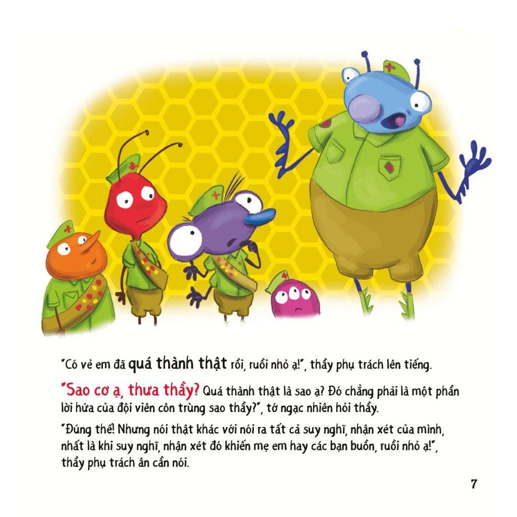 Nói thật không mất lòng: Câu chuyện kể về ruồi nhỏ đáng yêu cứ liên tiếp làm bạn giận, mẹ cáu… khi nói thật những suy nghĩ, nhận xét của mình. Chẳng lẽ cậu phải nói dối? Thật may, cuối cùng cậu đã hiểu rằng: “Lời nói chẳng mất tiền mua. Lựa lời mà nói cho vừa lòng nhau!”. Thế nên cậu đã quyết tâm học cách “nói thật mà không mất lòng”.