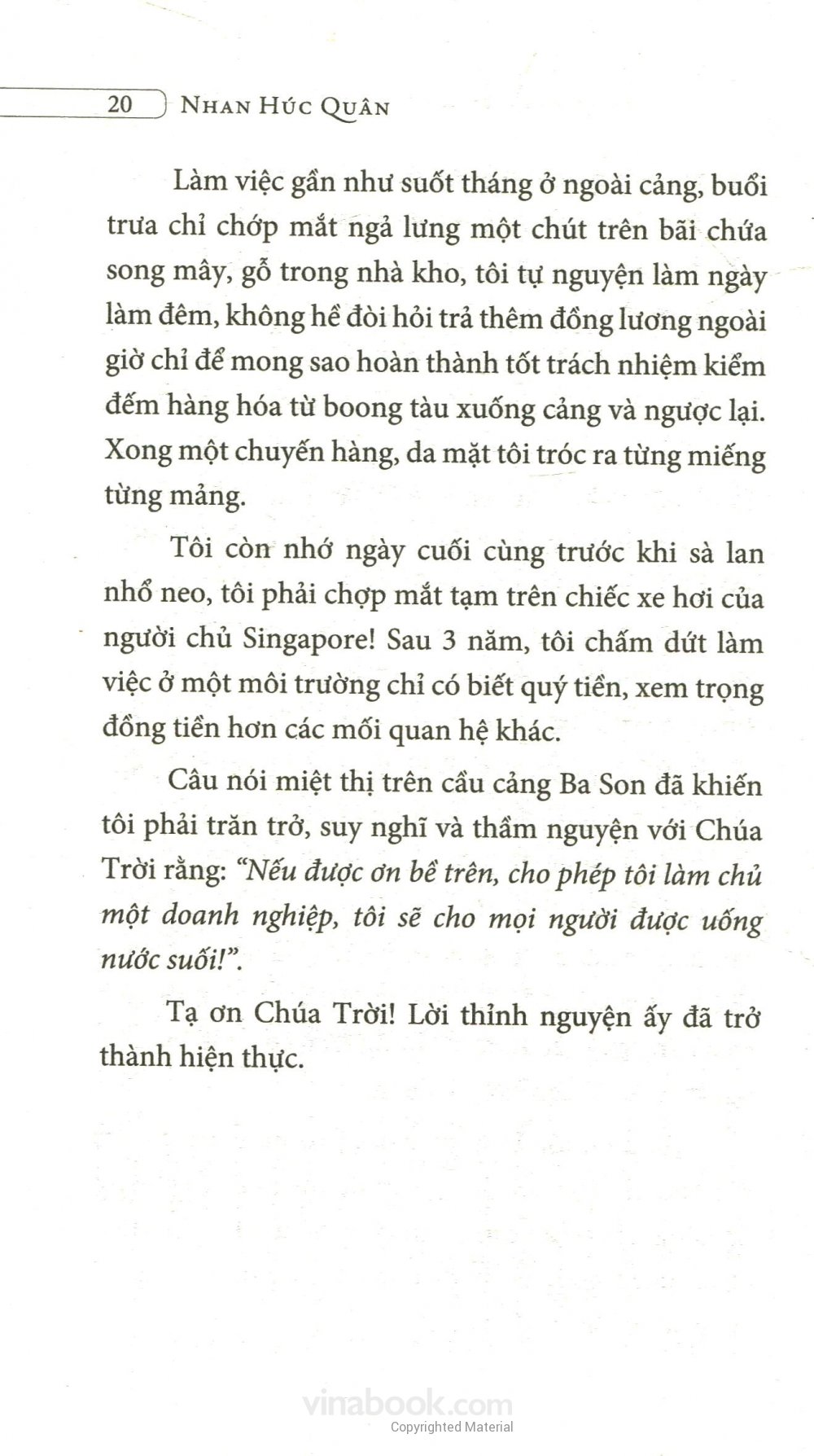 Nhan Húc Quân - tác giả cuốn sách Phép Màu Để Trở Thành Chính Mình hiện đang là Tổng giám đốc Công ty TNHH Bao bì giấy nhôm New Toyo Việt Nam, là công ty con của Tập đoàn New Toyo (Singapore). Ít ai biết được rằng, mặc dù là cháu gái của Chủ tịch HĐQT Tổng công ty, nhưng con đường đi lên đến thành công ngày hôm nay của chị không hề bằng phẳng. Mặc dù có quan hệ họ hàng thân thích với lãnh đạo cao nhất của Tổng công ty, nhưng chị không hề được hưởng ưu ái. Thực tế, khi Công ty mới thành lập (mang tên Toyo Việt), chị chỉ là một nhân viên kiêm nhiệm đủ mọi việc, từ bán hàng, đi thu tiền, khai hải quan làm thủ tục nhập hàng, giao dịch, thương lượng với khách hà Và chị phải mất 13 năm để đi từ vị trí của một nhân viên lên đến vị trí Phó tổng, rồi Tổng giám đốc công ty, điều hành hơn 200 lao động.