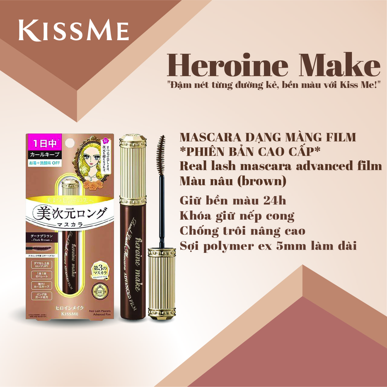 ✨Phiên bản Hoàng Gia Mascara Nâng Cong và Làm Dài Mi Dạng Màng Film Màu Nâu Kissme Heroine Make 6 G